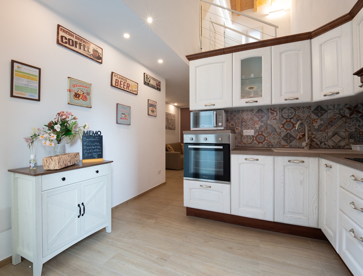 Cascinetta a pochi passi dal centro, con parcheggi gratuiti fuori dalla proprietà. Piano terra: giardino, portico, cucina attrezzata con ampissimo soggiorno/salotto/zona lavoro,bagno di servizio. Primo piano: pensatoio, 1 camera matrimoniale e un grande bagno con vasca jacuzzi e doccia doppia + 1 camera matrimoniale, entrambe con pale a soffitto. Pavimento in parquet e pietra, arredo molto curato con elementi a contrasto tra il vintage e le opere moderne delle artiste proprietarie.