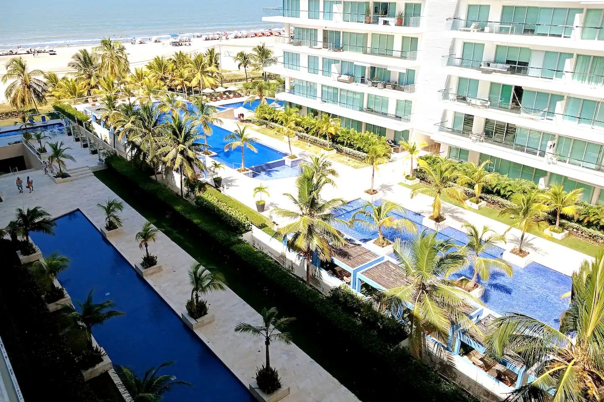 Disfruta Cartagena en este acogedor apartamento en Morros Epic, con salida directa a la playa. Cuenta con 1 dormitorio en suite con cama doble, cama sencilla y cama nido, ideal para parejas o familias de hasta 4 personas y 2 baños completos. Tiene A/C y TV en habitación y sala, cocina totalmente equipada y una amplia terraza con hermosa vista al manglar y al mar. El conjunto ofrece 3 piscinas, jacuzzi y gimnasio, perfectos para relajarte y disfrutar al máximo tu estadía