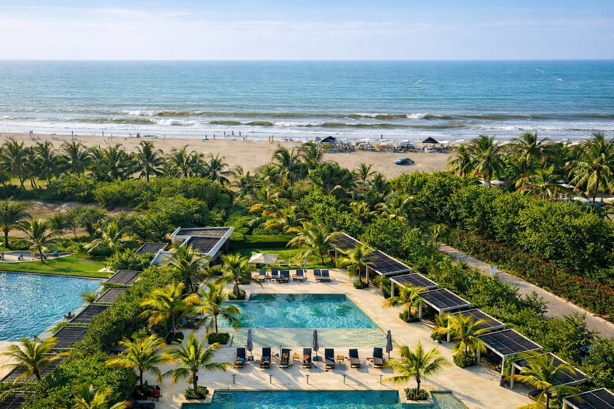 ★ Beautiful Beachfront Apartment ★ located in the Morros Ío condominium, Serena del Mar — one of the most exclusive and modern areas of Cartagena. "Stunning side view of the Caribbean Sea" "Exclusive beachfront resort with magnificent spaces to relax and enjoy" "Professional cleaning and disinfection" → 10 minutes from Rafael Núñez International Airport → 15 minutes from the Historic Walled City → 3 minutes from Las Ramblas Mall → Surrounded by renowned hotels: Meliá, Estelar, and Karibana