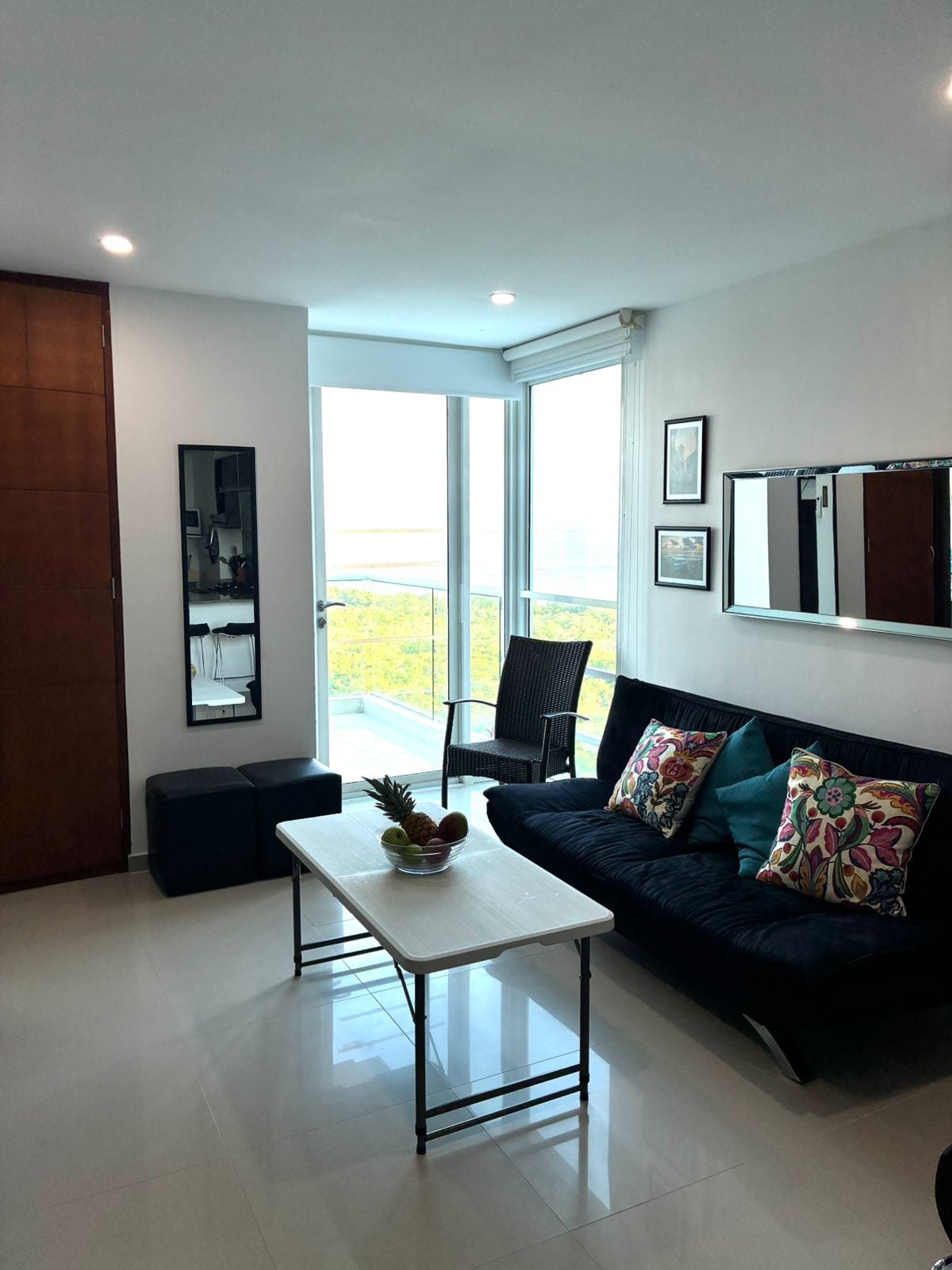 Aparta-Suite im 9. Stock des exklusiven Cartagena Beach Gebäudes, ausgestattet mit allem, was Sie für einen wunderbaren Aufenthalt in Cartagena benötigen. Genieße WLAN, direkten Blick auf die Lagune und den Flughafen und wunderschöne Sonnenuntergänge. Spaziere am Park und am Strand entlang oder trainiere mit Tanz und Aerobic im Linear Park. Umgeben von Geschäften und nur 2 Minuten vom Flughafen Rafael Núñez entfernt. Das Gebäude befindet sich noch im Bau, daher sind die Gemeinschaftsbereiche noch nicht verfügbar.