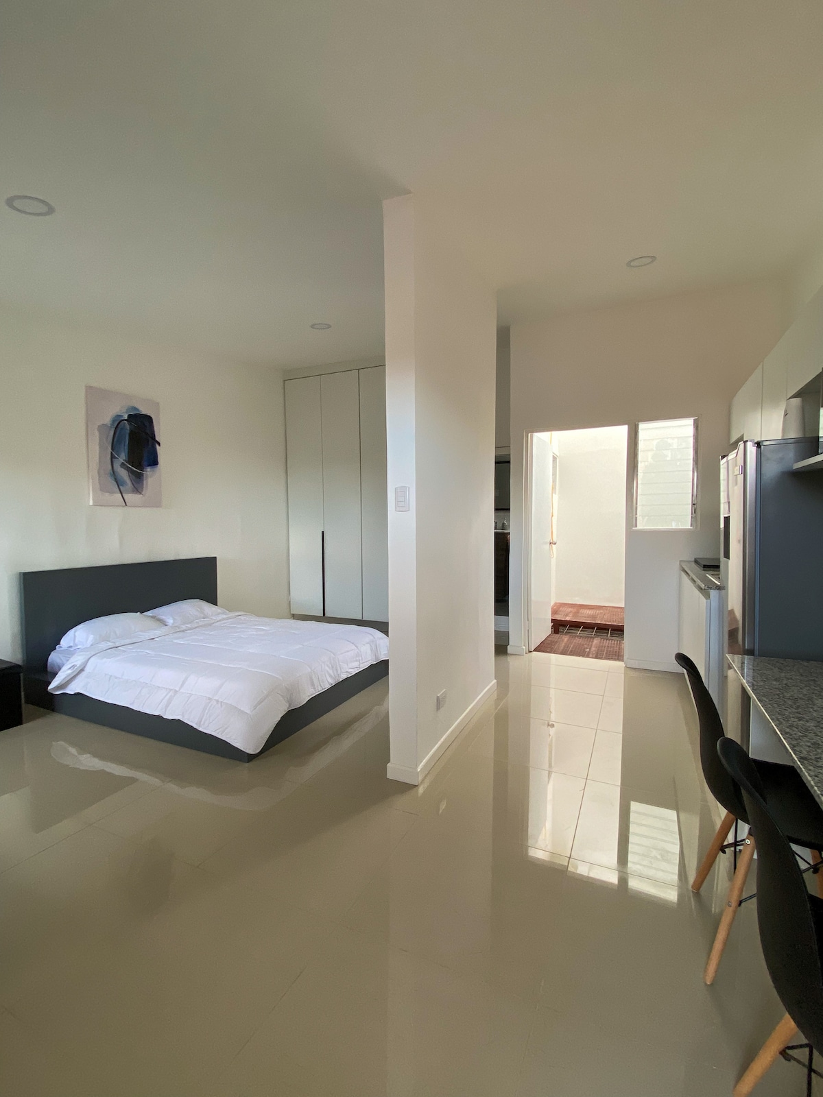 Stilvolles, voll ausgestattetes Loft in einer ruhigen Gegend von San Pedro - nur 5 Gehminuten von Geschäften, Restaurants, Bars, Kinos und vielem mehr entfernt. Nur 15 Minuten mit dem Bus in die Innenstadt von San José. Perfekt für kurze oder längere Aufenthalte. Genieße schnelles WLAN (LAN verfügbar), einen 50-Zoll-Smart-TV, eine voll ausgestattete Küche und einen eigenen Arbeitsbereich. Komfort, Design und Bequemlichkeit in einem gemütlichen Aufenthalt.