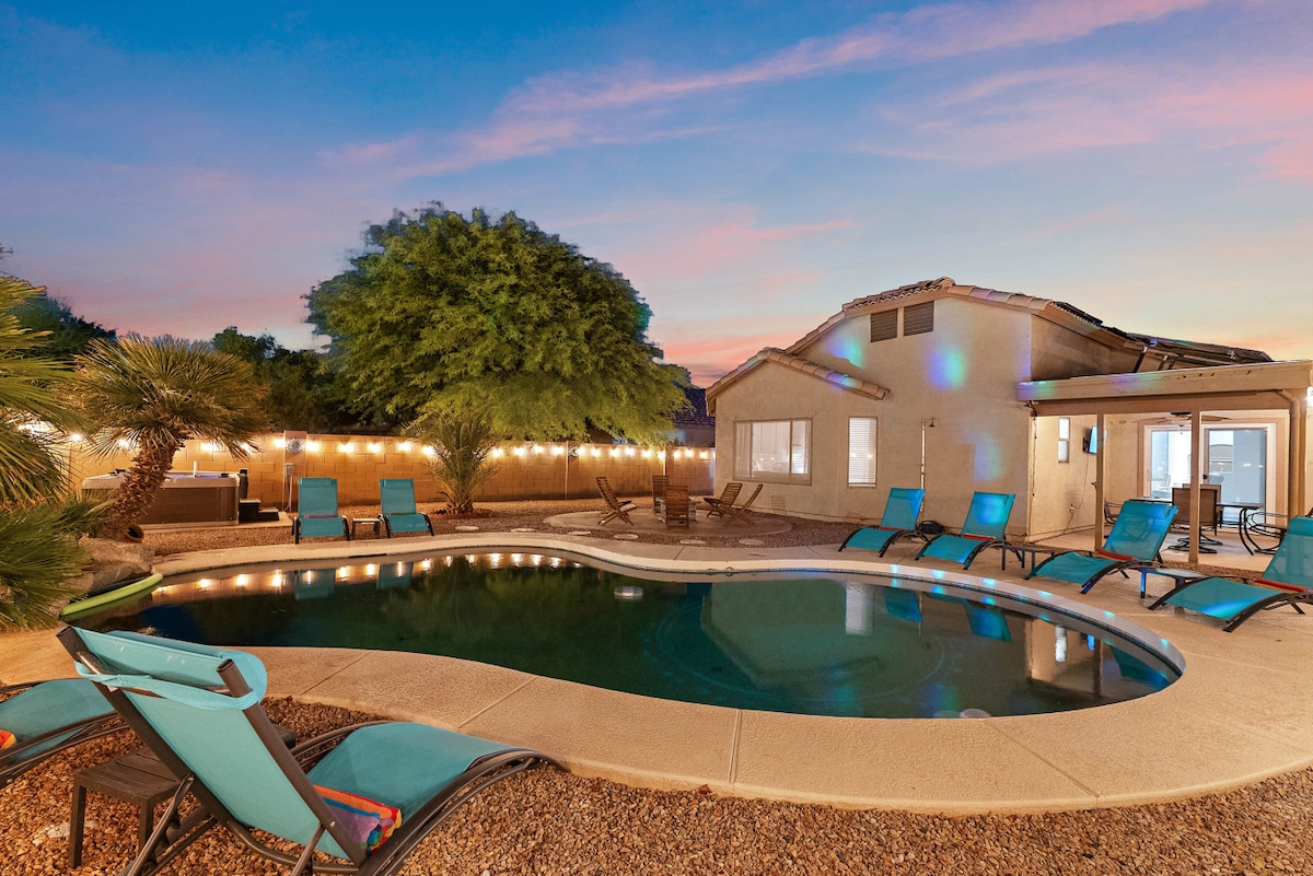 Experience a stylish retreat in this cozy home with a crystal-clear pool and hot tub. Tucked away on a quiet street in Casa Grande, this 3-bedroom gem is just a 2-minute drive to shopping and delicious restaurants and only 3 minutes to Palm Creek Resort. Perfect for family getaways, work trips, bachelorette or bachelor parties, or spring training, this unique space offers an inviting, homey atmosphere that makes your stay truly memorable and incredibly relaxing, ensuring cherished moments.