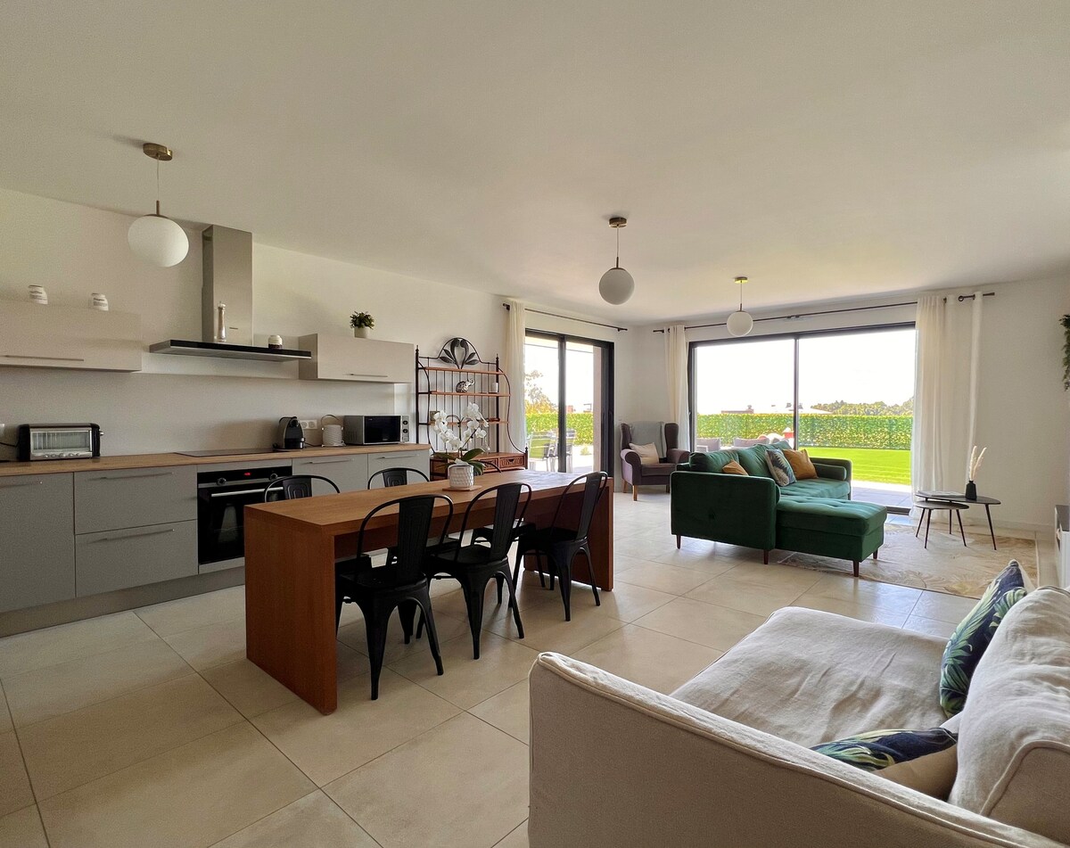 Sehr schöner 180° Meerblick und Berge , Architektenvilla von 2022 von 150 m2, 3 Minuten vom Strand, Restaurants und Geschäften, die ganzjährig geöffnet sind. Dieses Haus verfügt über einen großen privaten beheizten Pool, einen Whirlpool , eine gehobene Bulthaup-Küche, Außenplancha, großes Wohnzimmer mit Sofa/Bett, Kamin , 3 Schlafzimmer, darunter eine Master-Suite, 2 SDB, Heimkino, WLAN ... Sie haben eine möblierte Dachterrasse mit Meerblick für magische Sonnenuntergänge...