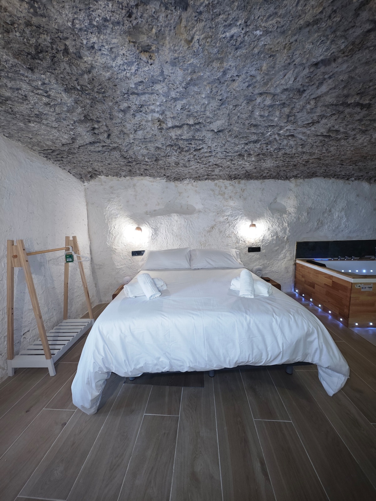 Alójate en está preciosa casa cueva y vive una experiencia diferente hasta ahora. Relájate en nuestro hidromasaje doble dentro de la cueva. Esta casa cueva está equipada con todo lo necesario para pasar unas buenas vacaciones. Cocina completa, hidromasaje, TV en salón y dormitorio, aire acondicionado, secador, plancha... NORMAS DE LA CASA: *No se admiten fiestas *Queda prohibido bajo sanción extraer o cavar en la cueva cualquier Amonite. *Se ruega tener precaución con la altura de la cueva