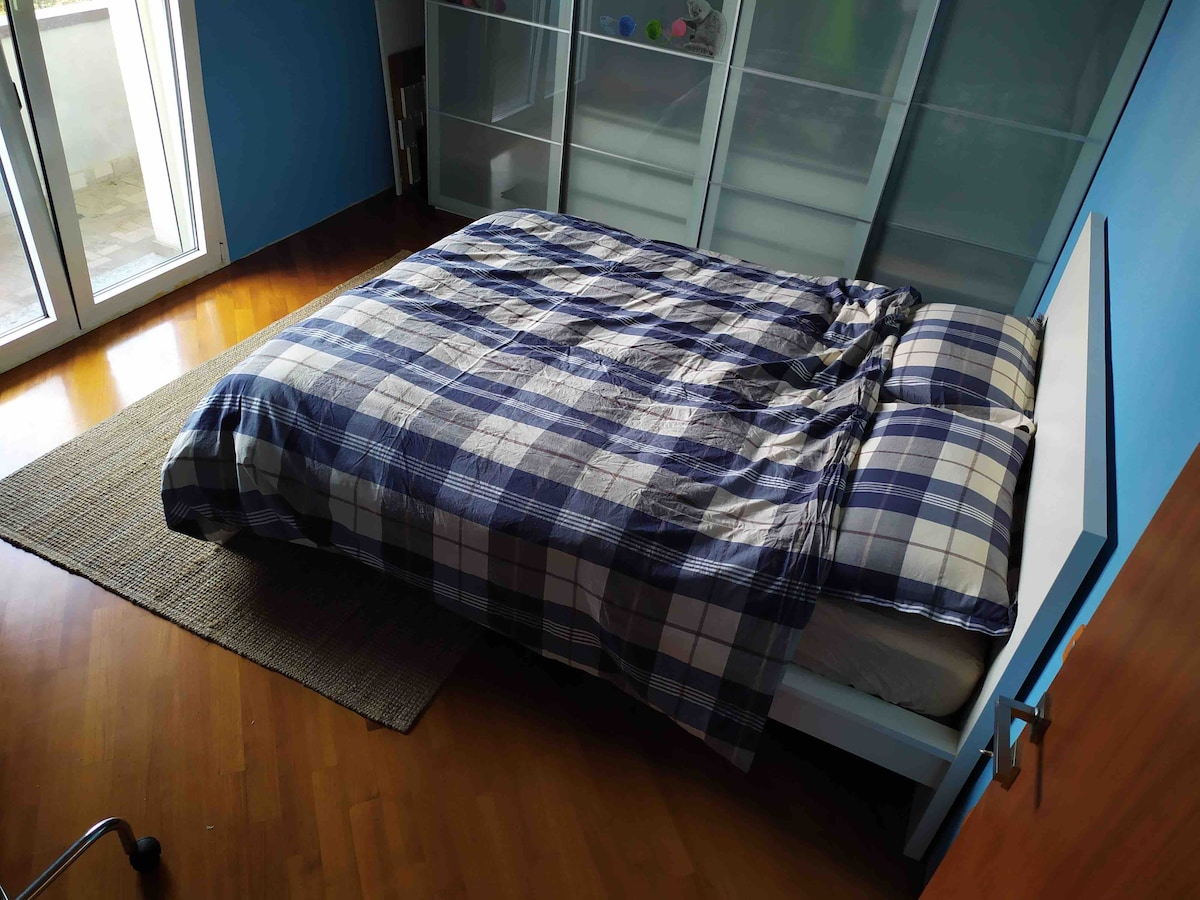 Die Wohnung befindet sich im Erdgeschoss einer Villa mit Vorgarten. Die Unterkunft bietet Platz für 7 Gäste, darunter 2 Doppelbetten und 3 Einzelbetten (ein Doppelbett kann in zwei Einzelbetten aufgeteilt werden). Die Einheit verfügt über 3 Schlafzimmer, 2 Badezimmer, Küche, Balkon, Vorgarten und Parkplatz für 2 Autos. Die Gäste haben die ganze Wohnung für sich, du wirst sie nicht mit anderen Gästen teilen. Wir werden nur das Haupttor teilen, das ich und meine Familie benutzen werden, um mit unseren Autos einzufahren.