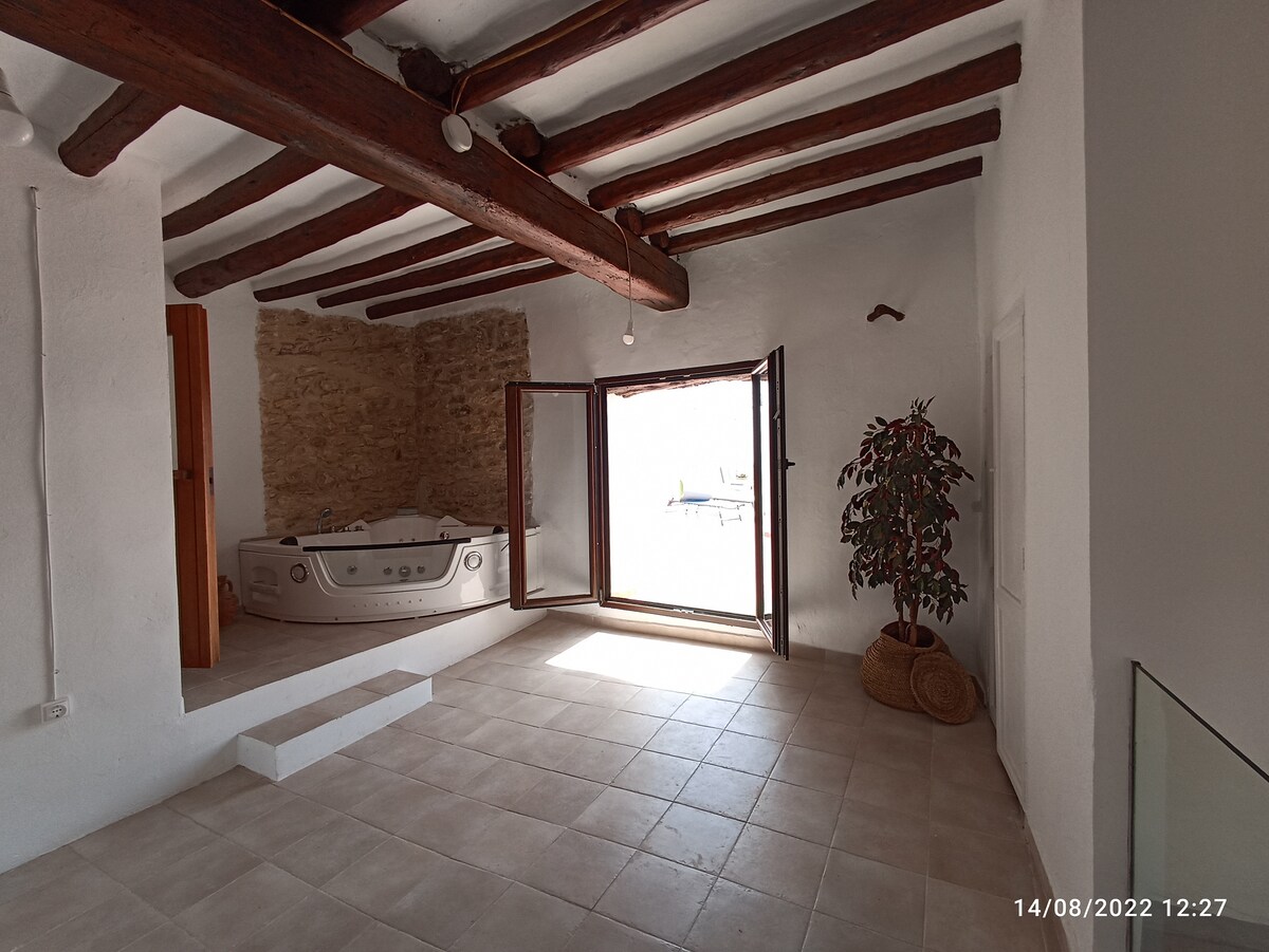 Apartamento en Sant Jordi, un pueblo tranquilo, a pocos kilómetros de la playa. Zona del maestrazgo. Segunda planta. Dos habitaciones con cuarto de baño independientes. Salón comedor con cocina. Sala de estar con sofá. Sala de estudio. Terraza privada y balcón a plaza mayor. Ubicado en una casa antigua en la plaza principal del pueblo, con otros dos apartamentos. Dispone de amplia zona común, terraza con vistas a mar y montaña, solarium, spa con bañera de hidromasaje y sauna. Descuento semanal.