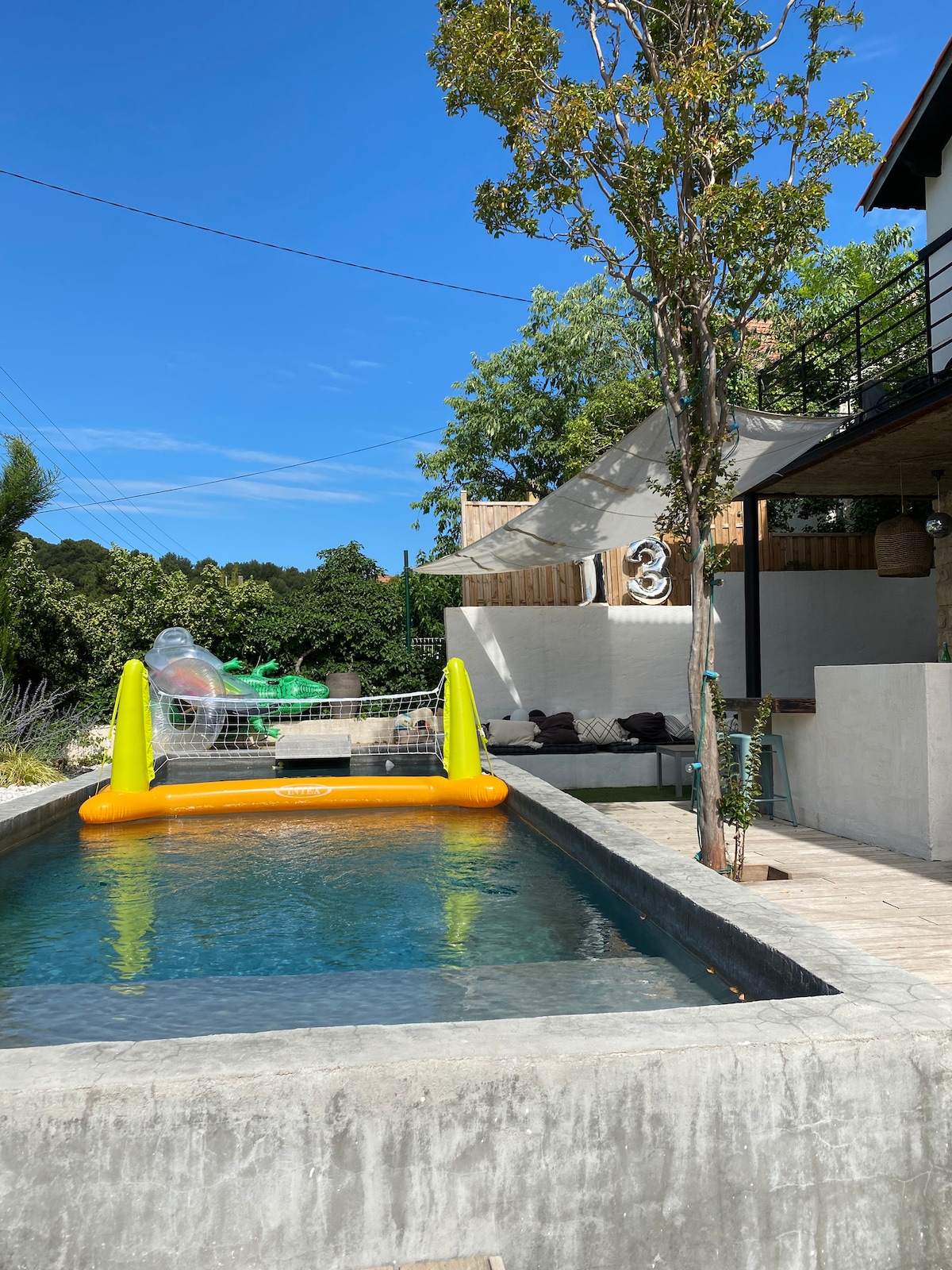 Atypische Hütte oder Luxusvilla? Leben Sie zwischen der Karibik und Bali in einer mediterranen Zen-Umgebung, wo Holz, Wasser und tropische Düfte (Palmen, Bananen, Mandarinen, Paradiesvögel ...) Sie reisen lassen und Sie Ihre Sorgen vergessen. Genießen Sie die Sonne zu jeder Tageszeit, wählen Sie Ihre Aktivität je nach Lust und Laune (Pool, Billard, Tischtennis, Petanque, Yoga, Stretching, Faulenzen: alle sind für Ihr größtes Vergnügen in Reichweite).