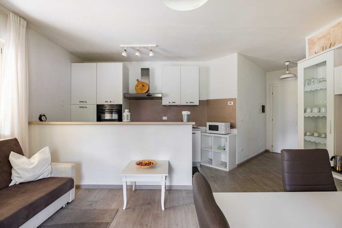 Neu renovierte Wohnung mit allem, was für Küche, Badezimmer und Zimmer benötigt wird, große Terrasse mit schönem Blick auf die umliegenden Berge und den Adamello-Park, nur wenige Meter von der Hauptstraße entfernt, umgeben von Bars, Pizzerien, Schönheits- und Wellnesszentren und Geschäften aller Art, Bushaltestelle 4 Minuten zu Fuß entfernt, kostenlose Parkplätze rund um den Platz, in der Mitte der wichtigsten Alpenpässe der Lombardei und Trentino-Südtirol, Ökologie-Natur-Sport-Kultur-Entspannung-