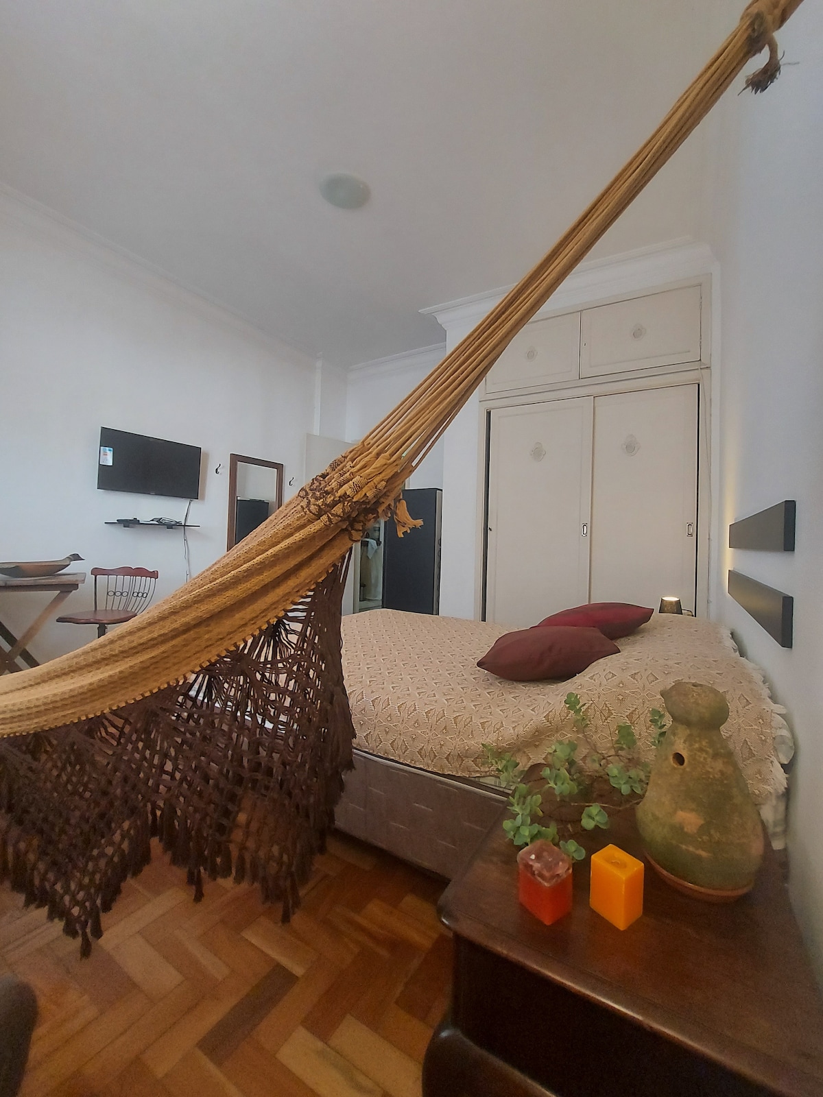 Hinweis: Bettwäsche und Handtücher werden bereitgestellt. Ruhige, Hintergrundwohnung, gemütlich mit WLAN, Doppelbett, Hängematte zum Entspannen, Bügeleisen, Ventilator, Kühlschrank, Herd, Beistelltisch, Fernseher, Küchenutensilien wie (Töpfe, Besteck, Geschirr, Gläser, Tassen...), Kaffeemaschine. Mitten im Zentrum der Stadt gelegen, bietet es unseren Gästen Komfort, reichlich Handel vor der Tür. Drehparkplatz in der Nähe mit Übernachtung. Genieße an diesem Ort Einfachheit.