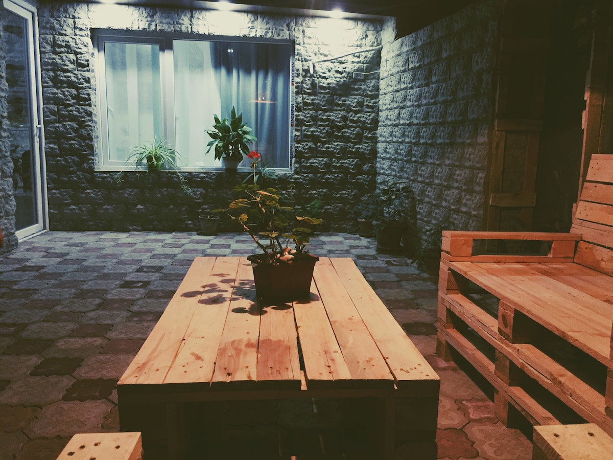 Welcome to our Lovely, Cozy and Comfortable Studio type House in the heart of the city. House has small green yard and with outdoor furniture to relax and chill. It is located near Metro Station Rustaveli. 2 Minutes walk to Rustaveli Avenue, 5 Minute walk to Rooms Hotel, Stamba and 2 Minute Walk to Restaurant Qeto and Kote.