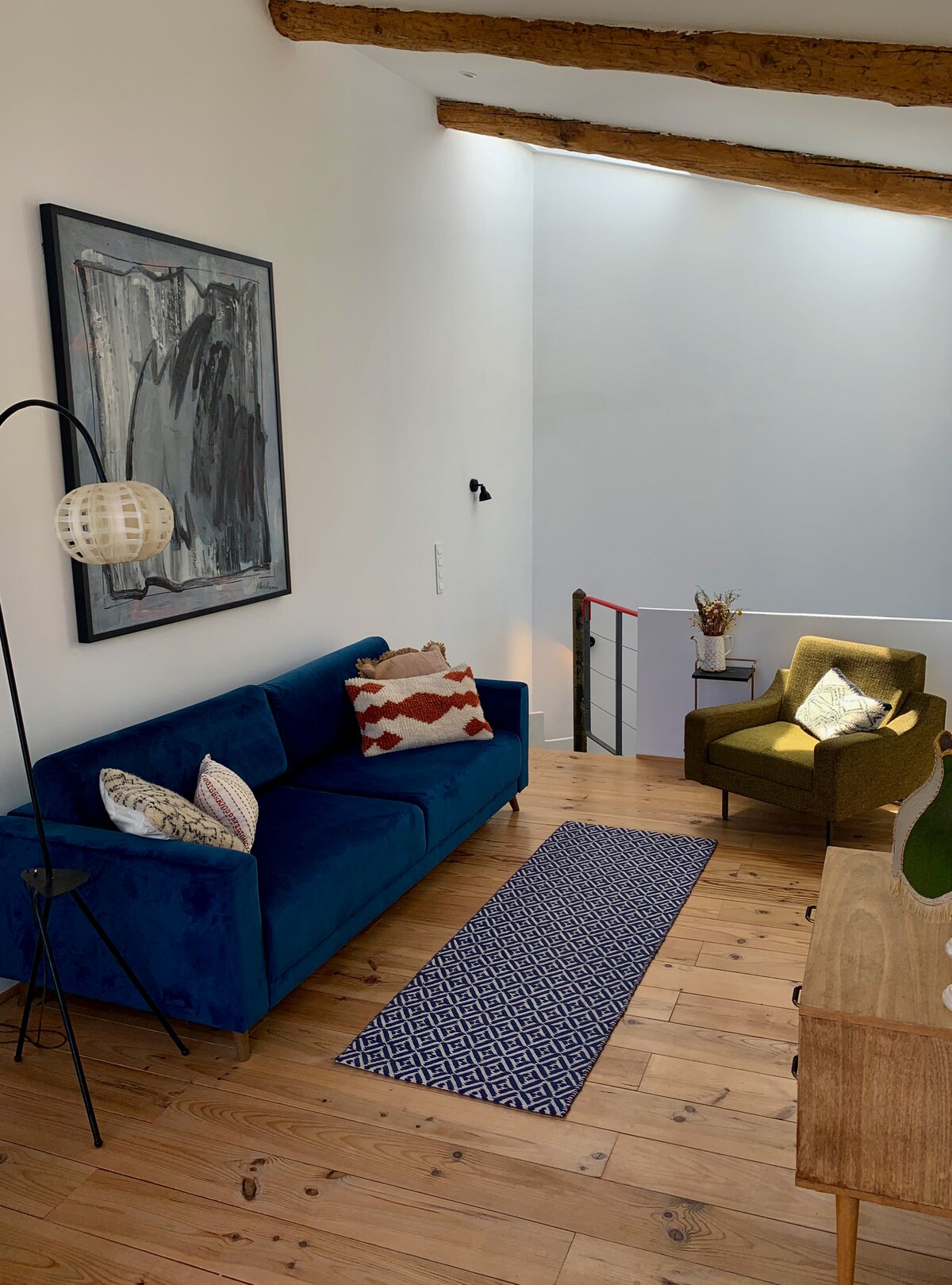 Unsere moderne, komfortable Wohnung befindet sich in einer alten Steinscheune. Der Balkon bietet einen atemberaubenden Blick auf ein altes Dorf, ein Schloss, einen Fluss und die umliegenden Hügel. Was für ein Ort, um nach einem Tag Sightseeing, einem Besuch in Spanien oder einem Tag am Strand nach Hause zu kommen! Parkplätze befinden sich in der Nähe und sind kostenlos.