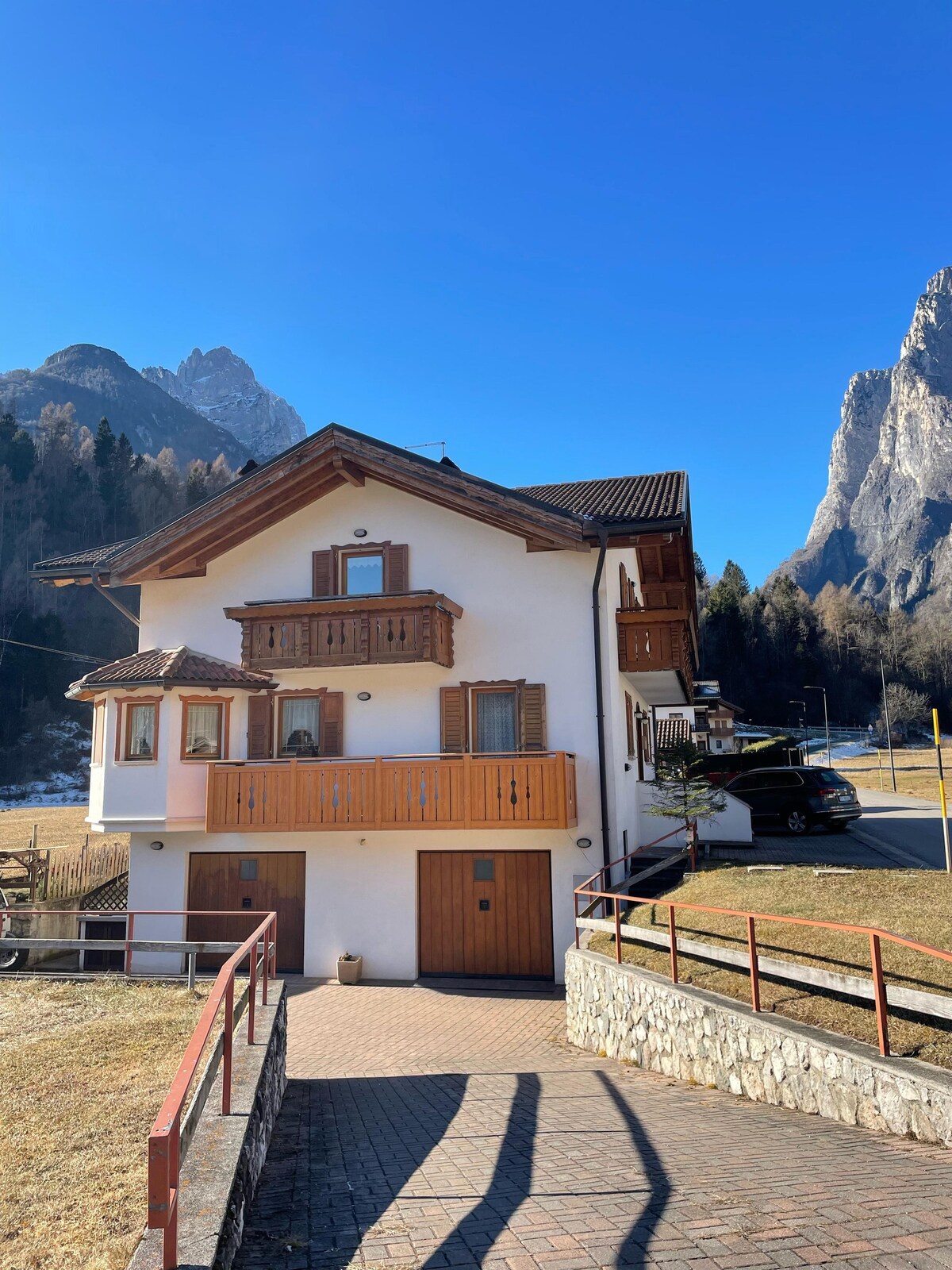 Blick auf die Pale di San Martino und Schnee vor dem Fenster. Bergwohnung im Erdgeschoss mit zwei Eingängen, zwei Doppelzimmern, ausgestatteter Küche, komplettem Bad, privatem Garten, kostenlosem Parkplatz und Skiraum. Ruhiges und stilles Viertel, ideal nach einem Tag auf der Piste. Direkter Panoramablick auf die verschneiten Dolomiten von den Schlafzimmern aus. Nur 10 Minuten von den Skiliften von Falcade – San Pellegrino und 49 km von Cortina, Austragungsort der Olympischen Spiele 2026.
