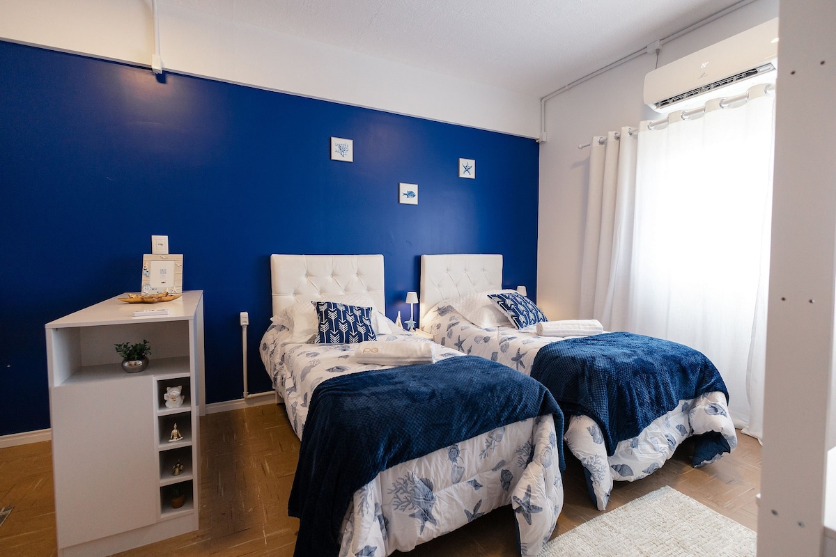 Es befindet sich im 1. Stock eines kleinen und ruhigen Gebäudes. Der Zugang erfolgt über Treppen. Die Wohnung steht dem Gast zu 100 % zur Verfügung. Ausgezeichnete Aussicht! Schlafzimmer mit Doppelbett, Wohnzimmer mit bequemem Sofa und Arbeitsbereich. Warmwasser an allen Wasserhähnen. Kühlschrank, Herd, Airfryer und Haushaltsutensilien. Waschmaschine. Bettwäsche, Decke, Kissen, Handtücher und Gesichtstücher und Haartrockner. Überdachte Garage, aber die Einfahrt ist niedrig und für Kleinwagen geeignet.