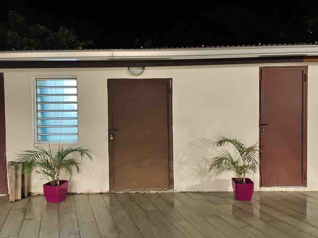 bonjour, mousse et katie vous propose une chambre salon avec terrasse pour passer un bon week-end, dans un environnement calme pas trop loin du centre ville qui est a moins d un kilomètre de la plage et des boîtes de nuit les plus réputés de cayenne,avec une possibilité de louer une voiture ou avec supplement de vous recuperer a l aeroport