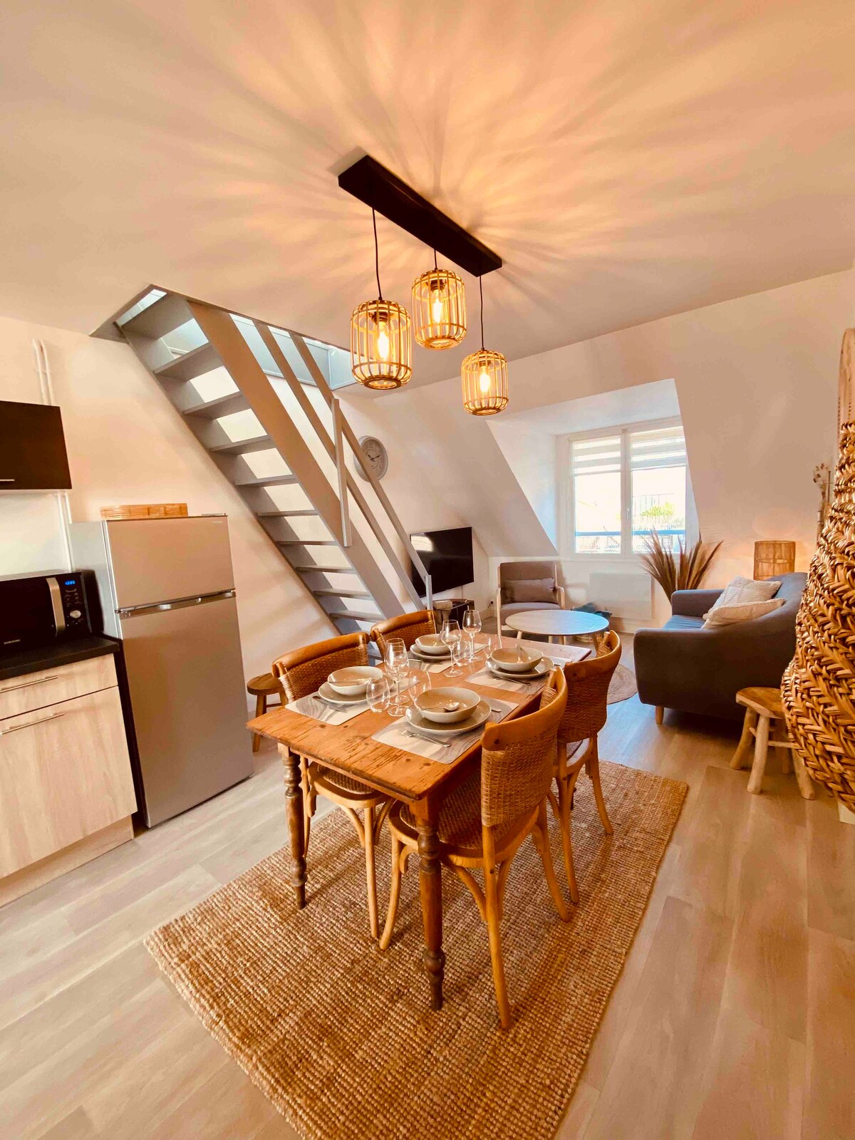 Wenn diese Unterkunft nicht verfügbar ist, entdecken Sie auch die neueste "Gemütliche Wohnung mit Blick auf das Meer & die Klippen - Ault" auf Airbnb, die sich im Erdgeschoss befindet. Auf den Klippen der Somme-Bucht gelegen, bietet diese helle Wohnung einen spektakulären Meerblick und eine ideale Umgebung, um abzuschalten, zu atmen und zu betrachten. Unsere Wohnung, ideal für zwei, kombiniert Komfort und atemberaubendes Meerpanorama. Gemütliches Wohnzimmer mit TV, moderner Küche, Esszimmer mit herrlichem Blick für wertvolle Momente.
