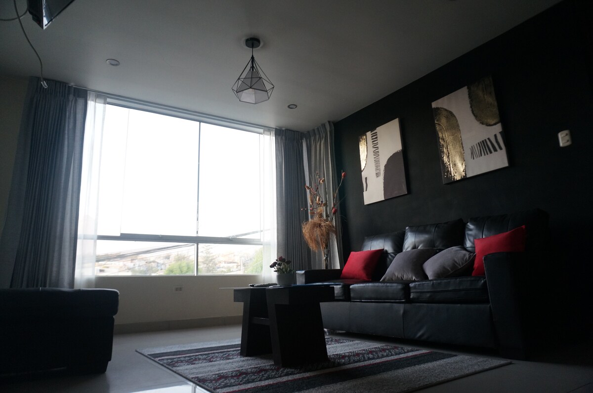 Entspanne dich in dieser ruhigen und eleganten Unterkunft. Von einem bezaubernden Balkon in der exklusivsten Gegend des Stadtteils Cayma aus genießt du den schönsten Sonnenuntergang von Arequipa. Wir laden dich ein, diese gemütliche Mini-Wohnung in einer privaten Wohnanlage mit Aufzug zu besuchen, die drei Blocks vom Plaza de Cayma und den besten Einkaufszentren, Malls, Banken und Restaurants der Stadt entfernt liegt. Wir haben Netflix kostenlos!