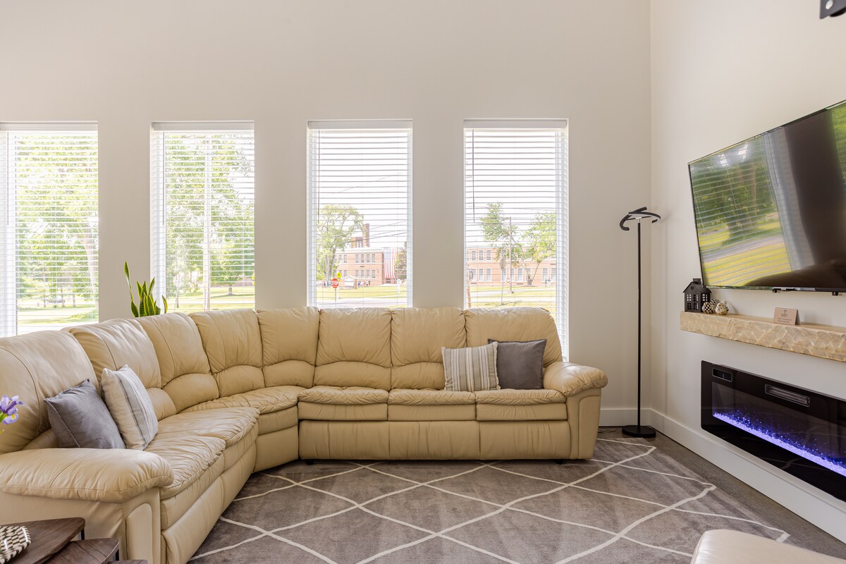 Erlebe ein Haus voller Fenster und Licht, das aus jedem Blickwinkel eine atemberaubende Aussicht bietet. Du fühlst dich, als wärst du auf dem Gipfel der Welt, umgeben von einer wunderschönen ländlichen Landschaft, die nur 1,8 Meilen vom charmanten Dorf Skaneateles entfernt ist! Schöne Inneneinrichtung, die auf deinen Komfort ausgerichtet ist. Du bist in der Nähe der Skaneateles Polo Fields, einer kostenlosen öffentlichen Bootsrampe, des Skaneateles Country Clubs, von Hochzeitslocations und eines Weinguts. Dieses neuere Haus ist frisch, sauber und gemütlich!