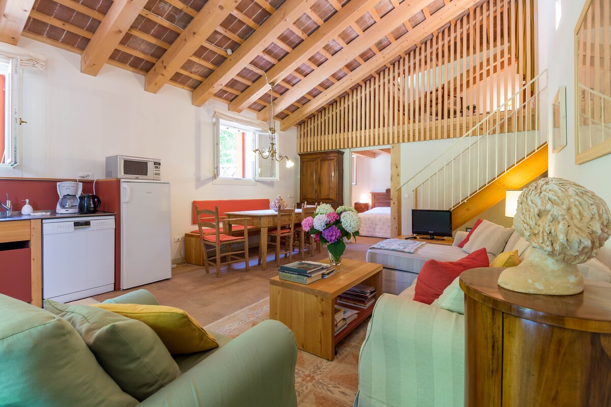 Laguna Loft is a true gem, located along the Brenta Riviera, on the ground floor of the historic residence of Palazzo Persico. Completely renovated, it retains the charm of country homes, thanks to a careful selection of materials. The space includes: A relaxing and cozy double bedroom An open-plan kitchen-living room with a sofa bed An excellent choice for those looking for a stay that combines comfort and beauty.