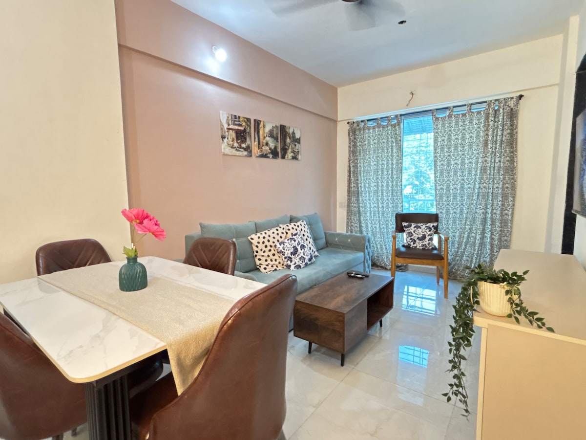Have fun with the whole family at this stylish place Stay in comfort and style! This fully equipped 2.5BHK offers a modular kitchen, comfortable bedrooms, elegant décor, and a charming balcony view for your morning coffee. (all basic amenities provided like a washing machine, utensils and kettle, bathroom amenities, fridge, 2-TV, and free wifi)