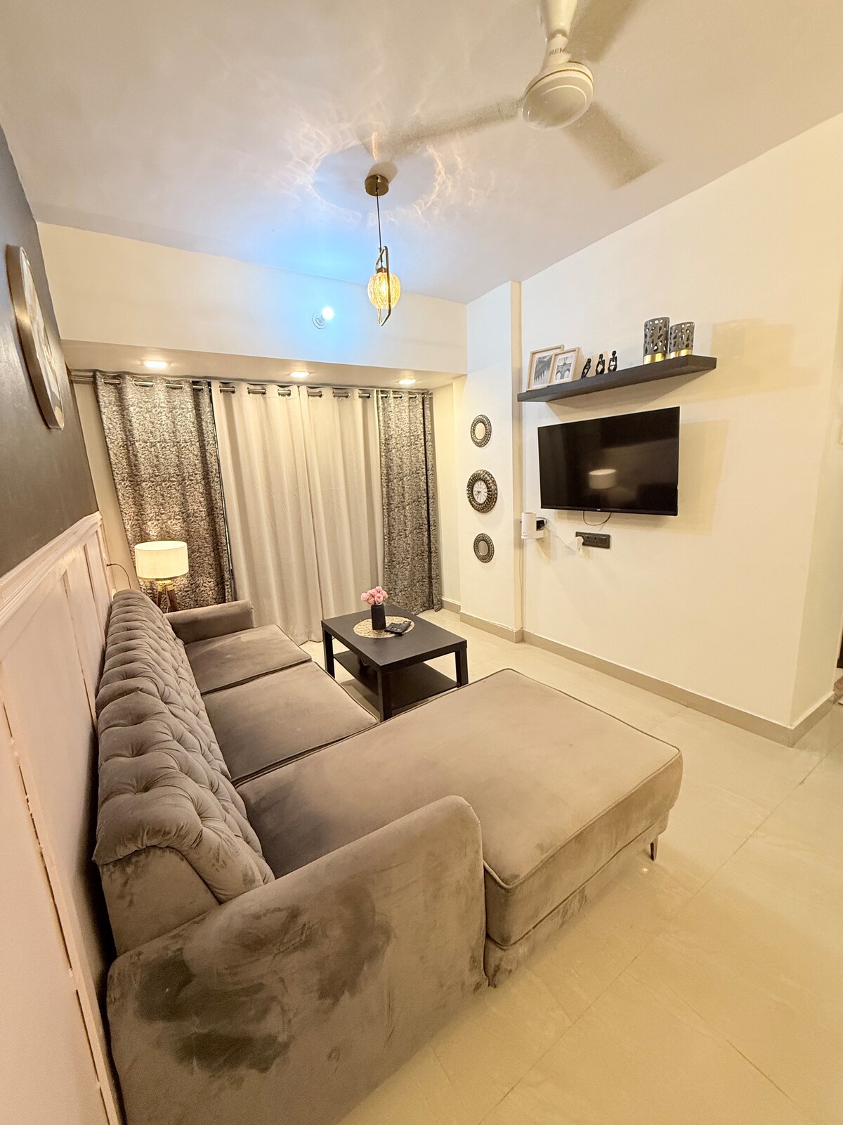 Übernachte in unserer voll möblierten 1-BHK-Wohnung im Luxus, die ein gemütliches Schlafzimmer, zwei Badezimmer (ein angeschlossenes Schlafzimmer, ein gemeinsames Schlafzimmer) und eine voll funktionsfähige Küche mit Geräten und grundlegenden Kochutensilien bietet. Entspanne dich im geräumigen Wohnzimmer mit einem großen Smart-TV und elegantem Innenarchitektur. Genieße hochwertige Möbel, die ein zweites Zuhause schaffen. Perfekt für kurze und lange Aufenthalte, verspricht diese Wohnung Komfort und Bequemlichkeit in erstklassiger Stadtlage. Buche jetzt für einen außergewöhnlichen Aufenthalt!