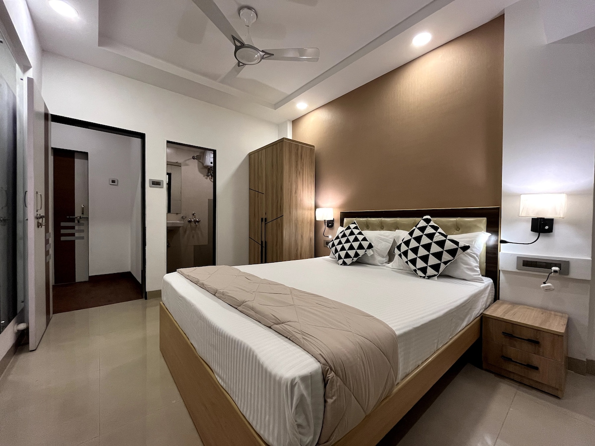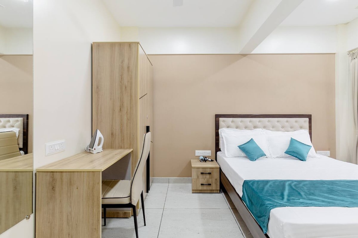 Helle und moderne 1BHK in CBD Belapur mit Queensize-Bett, Balkon, angeschlossenem Badezimmer und einfacher Küchenzeile. Ausgestattet mit WLAN, Andriod TV, täglicher Zimmerreinigung (Wischen & Utensilienreinigung), Gas, Wasser. Hausmeister im Gebäude verfügbar. Zugangskontrolltore sorgen für zusätzliche Sicherheit – ideal für Familien und Alleinreisende. Zu Fuß zum D-Mart, Restaurants, 5 Minuten vom Apollo Hospital & Neuro Gen. Swiggy, Zepto, Blinkit, Ola & Uber unterstützt. Rauchen, Besucher oder Partys sind nicht erlaubt.