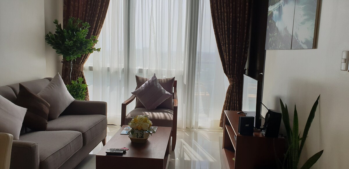 Mactan Newtown is accessible to airport, beaches, restaurants, malls, banks, atm and terminals. It's a one stop shop where you enjoy your time for sweet vacay, work, live, play and learn new things. There is an intercom caller ID set up in the room either visitors are allowed to enter. It's located in the corner area where you can see the relaxing ocean view 360degrees. Their is McDonalds and 27/11 open 24hours with security inside and outside the property. COME AND HAVE FUN IN THE PHILIPPINES.