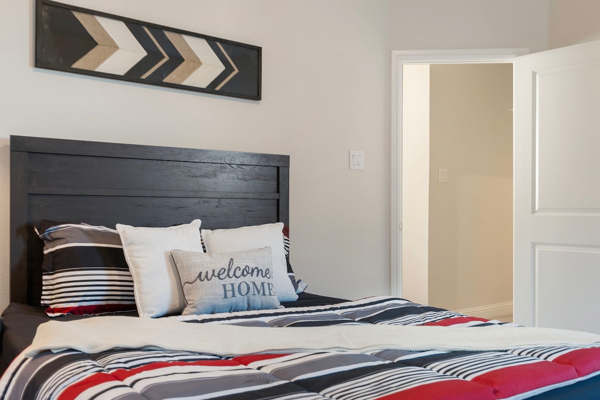 Privater Haupteingang, „nicht gemeinsames Badezimmer“ komfortables 1-Schlafzimmer, 1-Bad Vorderseite des Hauses, 2. Zimmer wird 🔒 während deines Aufenthalts sein. Dieser Raum befindet sich unter demselben Dach, getrennt von der Gastgeberseite durch verschlossene Fenstertüren, die mit Vorhängen bedeckt sind, die den Gästen vollständige Privatsphäre bieten Der Gastgeber wird während deines Aufenthalts den Hintereingang/die Garage benutzen • Ein Schlafzimmer: mit Doppelbett • Küche/Spüle • 1 Badezimmer • Eigenständiger Check-in • Straßenparkplatz direkt vor dem Haus • Mini-Split