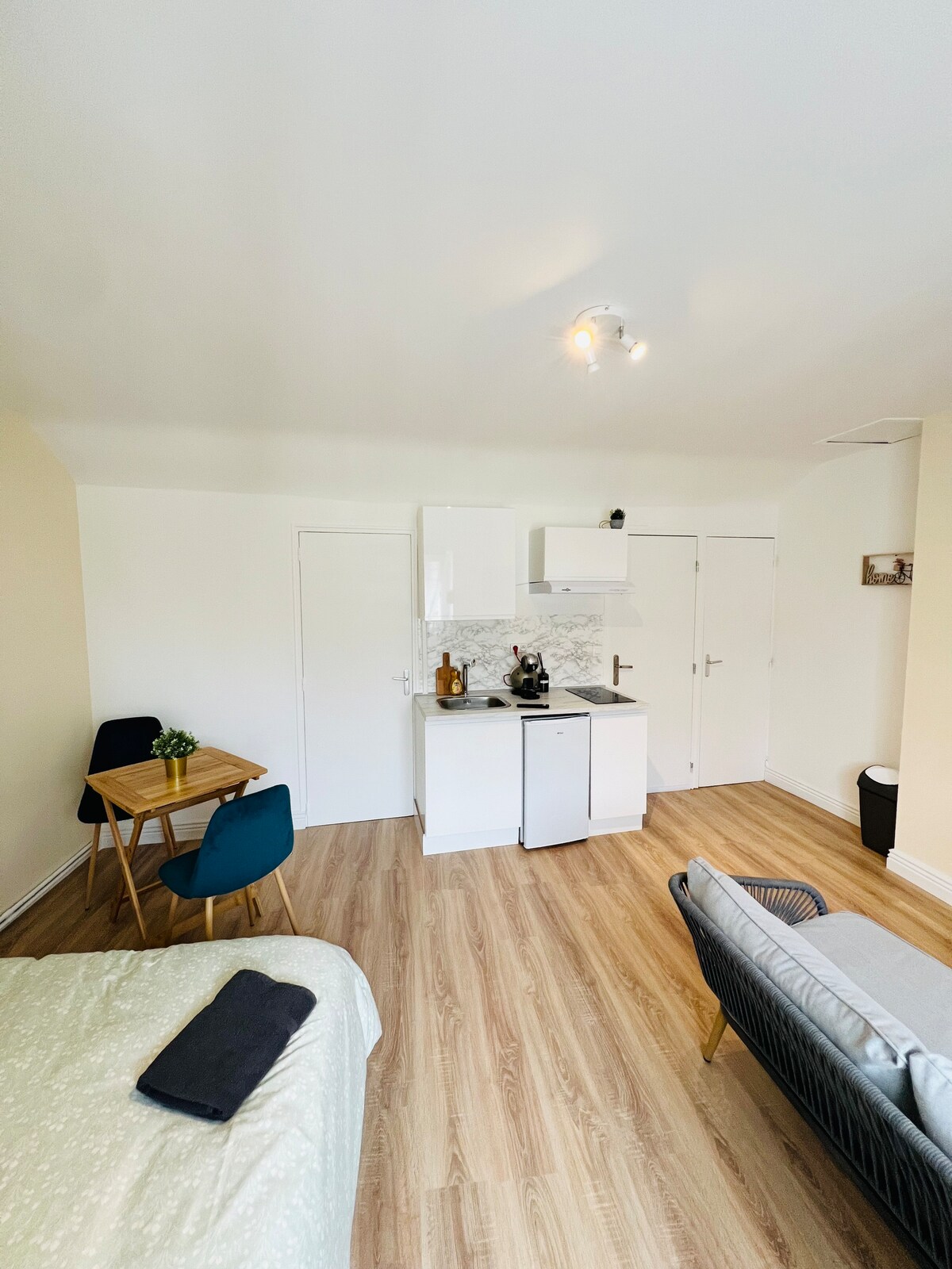 Studio Cosy à Châtellerault – Idéalement Situé au 2ᵉ Étage Ce charmant studio, situé au 2ᵉ étage d’un immeuble calme, est parfait pour un séjour professionnel ou une escapade. À seulement 5 minutes de la gare et dans un quartier paisible, il est proche de toutes les commodités : boulangerie (1 min), tabac (2 min) et restaurant.