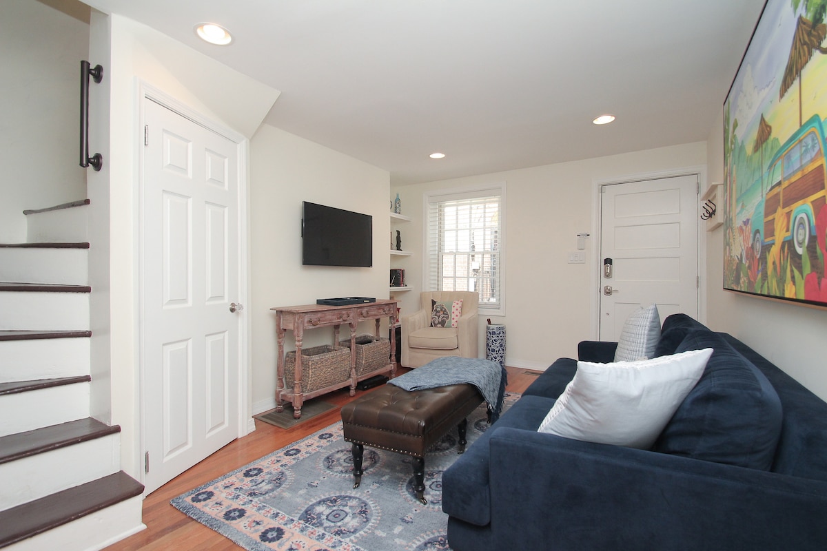 Wunderschön renovierte 1.550 Quadratfuß große, zweistöckige Wohnung mit 2 Schlafzimmern/2,5 Badezimmern in einem Privathaus! Bietet bequem Platz für 4 Personen (2x Queensize-Betten) und es gibt viel Platz zum Ausbreiten und Entspannen. Schön eingerichtete Möbel und Dekor, an einer einfach charmanten Kopfsteinpflasterstraße gelegen. Unschlagbare Lage in der Altstadt – nur einen kurzen Spaziergang von allen Attraktionen entfernt, die Philly zu bieten hat. Es ist eine wunderbare Unterkunft für reisende Geschäftspartner, die Platz, Familienausflüge und intime Gruppentreffen wünschen.