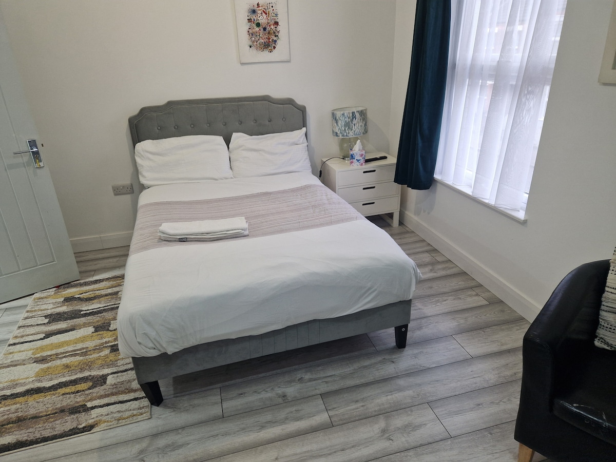 Stylish refurbished apartment in Bedford, ideally located close to the town centre and transport links, with fast trains into London. Sleeps up to 4 guests with a comfortable bed and sofa bed. Enjoy Netflix, high-speed Wi-Fi, and a fully equipped kitchen for short or long stays. Perfect for contractors, business travellers, couples, families, and holidaymakers. Close to shops, restaurants, parks, and the river — an ideal base for work or leisure. Photos for illustration purposes