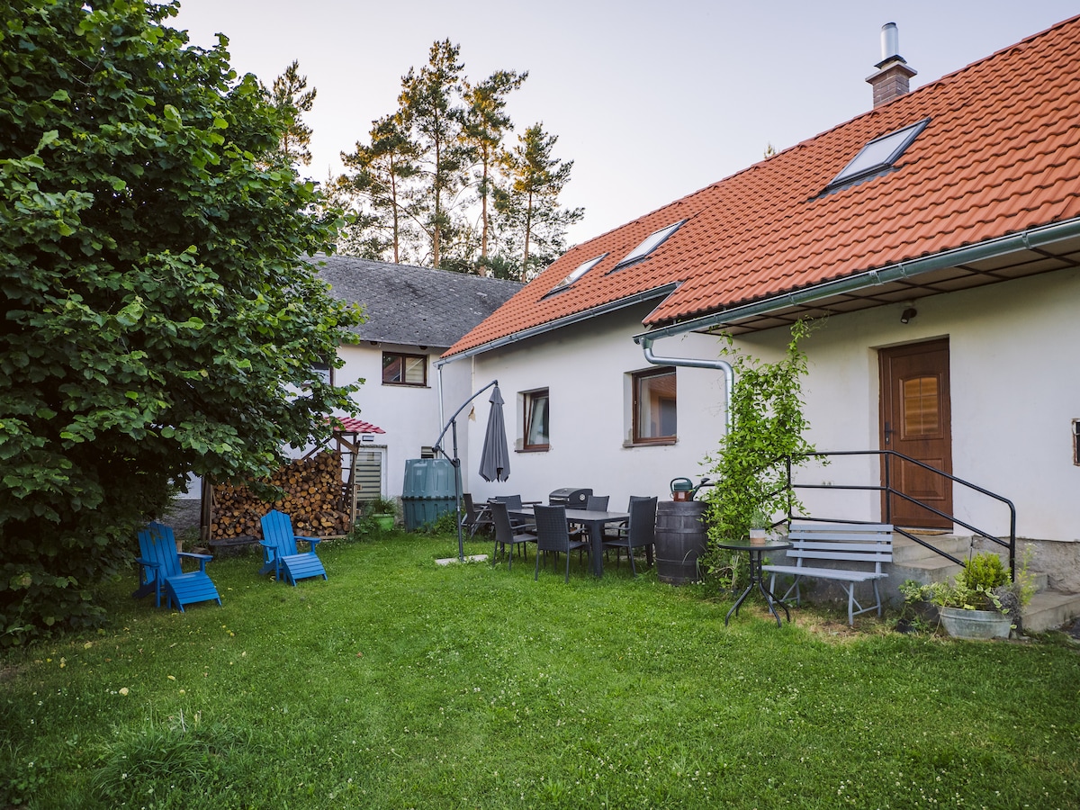Komm und erlebe die Ruhe des Landlebens in unserer kürzlich renovierten Unterkunft, die eine Stunde südlich von Prag in der wunderschönen südböhmischen Landschaft liegt. Genieße die Natur durch einen Spaziergang im Wald, genieße ein Feuer unter dem Sternenhimmel, Wildtierbeobachtungen... eine wahre städtische Flucht. Erlebe das Beste des Landlebens – mit dem gleichen Komfort wie zuhause. Bleibe, ruhe dich aus und entspanne dich oder unternimm einen Ausflug zu einem der vielen Sehenswürdigkeiten in der Nähe! Auch mit öffentlichen Verkehrsmitteln erreichbar.