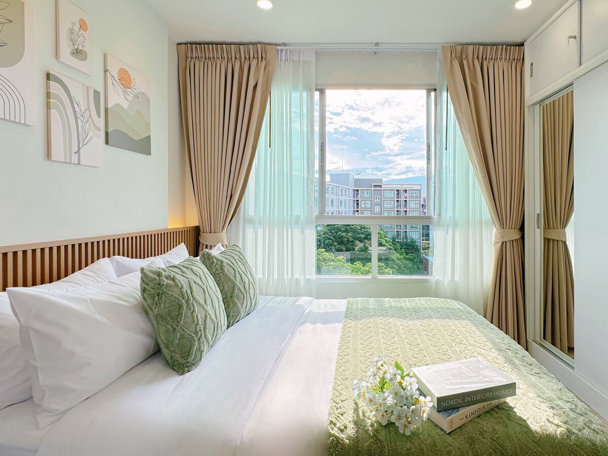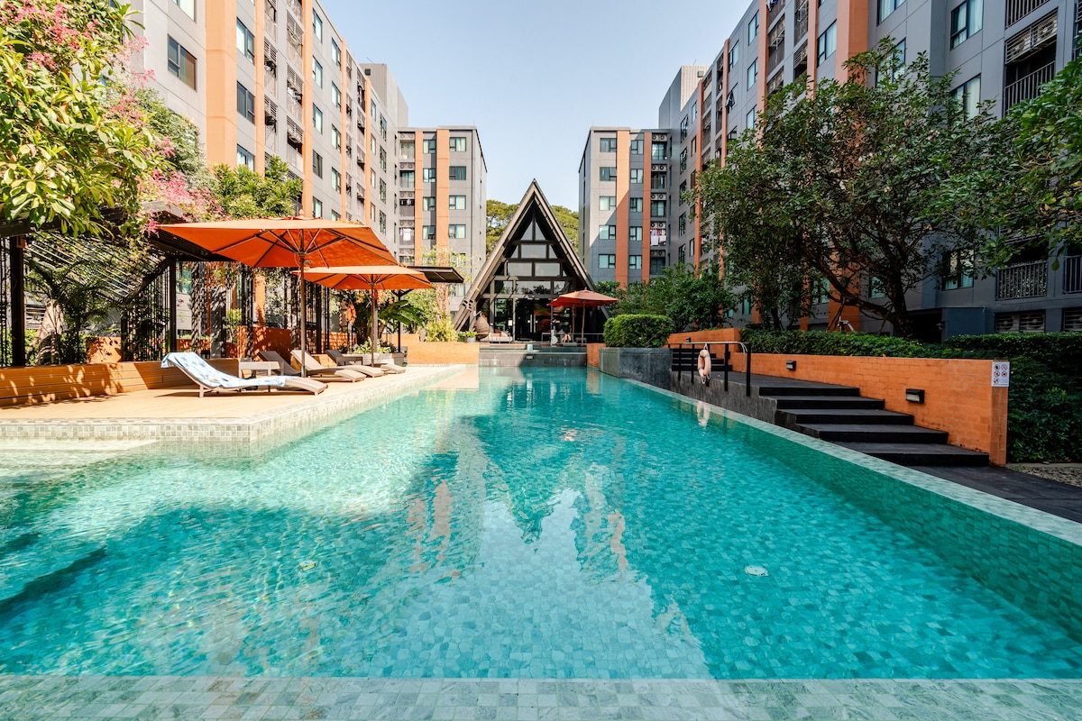 Modernes, minimalistisches Studio mit Blick auf den Pool, ideal für Paare, Familien oder Freunde. Nur 5 Gehminuten vom Central Festival, dem größten Einkaufszentrum von Chiang Mai mit Geschäften, Restaurants und einem Kino, entfernt. Genießen Sie eine stilvolle, gemütliche und moderne Eigentumswohnung mit allem, was Sie für einen erholsamen und unvergesslichen Aufenthalt benötigen. Dein perfekter Ausgangspunkt in Chiang Mai!