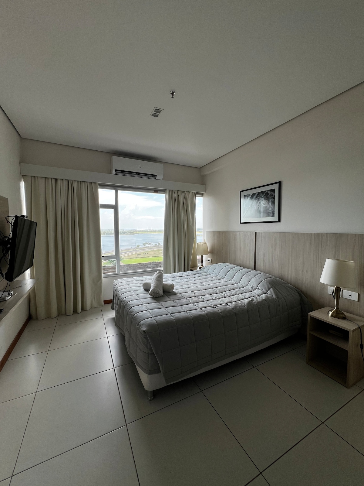 Brandneue Wohnung in luxuriösem Gebäude. Es verfügt über eigene 40 m², mit Smart-TV, WLAN, und im Gebäude haben Sie alle Annehmlichkeiten: Pool , klimatisiertes Quincho mit Grill, Kinderspielzimmer, ausgestatteter Fitnessraum usw. Es ist eine 5-minütige Fahrt zum wertvollsten Unternehmenszentrum der Hauptstadt und 25 Gehminuten entfernt. Mit dem Auto sind es auch 11 Minuten zum Flughafen Silvio Pettirossi Es verfügt über ein Doppelbett + ein Schlafsofa. Insgesamt kannst du bis zu 3 Personen schlafen.