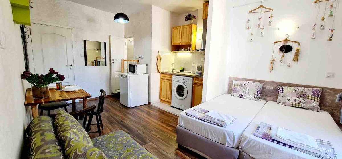 Unsere kürzlich neu gebaute und voll möblierte 2-Zimmer-Wohnung mit Parkplatz an der Straße eignet sich am besten für Familien, Freunde und Geschäftsreisende. Unsere Wohnung liegt im Herzen von Plovdiv, nur wenige Schritte vom pulsierenden Viertel Kapana entfernt, und bietet ruhige Privatsphäre in einem ruhigen Haus. Nur wenige Gehminuten von den besten Restaurants und Sehenswürdigkeiten entfernt. Im Inneren erwartet dich ein gemütliches Wohnzimmer mit TV/WLAN und eine gut ausgestattete Küche, die sich perfekt für die Zubereitung von Mahlzeiten eignet. Erlebe Komfort und Bequemlichkeit, während du das schöne Plovdiv erkundest!
