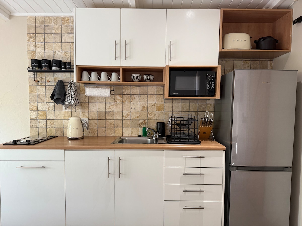 Die Cottage Suite im Karo-Stil bietet Platz für zwei Personen und liegt versteckt in den hübschen Gärten hinter dem Haupthaus der Casa Milorca, die 1860 erbaut wurde und sich in einer der schönsten Straßen von Prince Albert im historischen Herzen der Stadt befindet. Das Ferienhaus verfügt über ein Kingsize-Bett mit hochwertiger weißer Bettwäsche und ein eigenes Bad mit Dusche sowie einen kompakten Wohn- und Essbereich. Der Küchenbereich verfügt über Abwaschmöglichkeiten, einen Toaster, einen Wasserkocher, eine Mikrowelle und einen Bar-Kühlschrank sowie grundlegende Küchenutensilien. Es gibt auch eine Tee- und Kaffeestation mit hausgemachten Zwiebacken. Die Cottage Suite, die über eine eigene private Veranda verfügt, kann auch mit zwei Einzelbetten anstelle eines Kingsize-Betts ausgestattet werden. Dank der Klimaanlage ist das Ferienhaus im Sommer kühl und im Winter warm; es gibt auch einen Standventilator, wenn das bevorzugt wird.