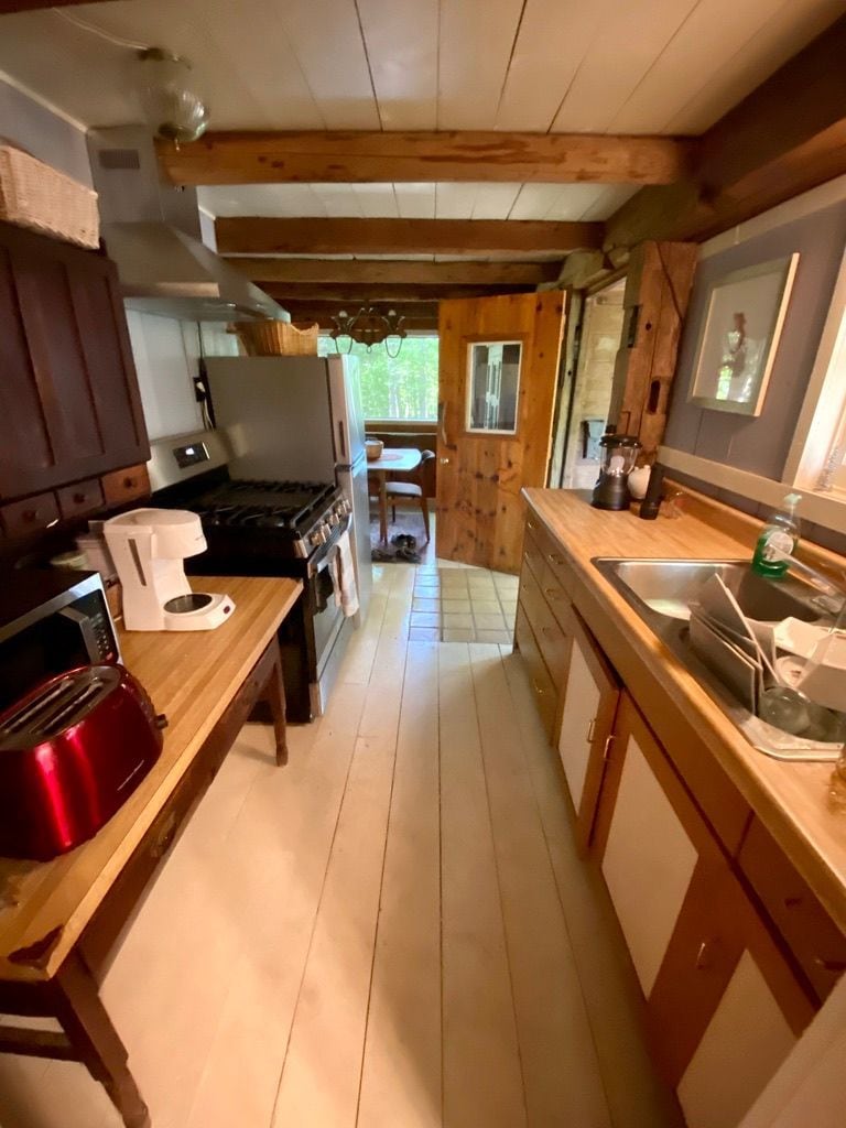 Dieses Haus aus dem Jahr 1904 wird von unserer Familie seit mehr als 40 Jahren geliebt. Es wurde mit einer lustigen Mischung aus Bauernhaus, Vintage und skurrilen Stimmung renoviert, um Gäste willkommen zu heißen. Das Obergeschoss ist offen und geräumig mit einer kniffligen alten Treppe...bitte sei vorsichtig! Das Erdgeschoss verfügt über eine kleine, aber voll funktionsfähige Küche, der Wohnbereich über einen gemütlichen elektrischen Kamin und das Badezimmer ist blitzsauber.