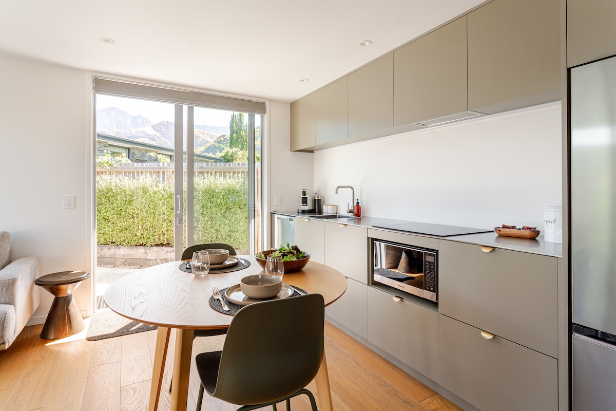 Wir befinden uns im historischen Goldminendorf Clyde, Central Otago. Nur 5 Gehminuten von preisgekrönten Cafés und Restaurants entfernt. Unsere neu gebaute, stilvolle, temporäre Wohnung ist warm, sonnig und von einem etablierten Garten mit 80 Jahre alten Obstbäumen umgeben. Wir haben eine voll funktionsfähige Küche, ein unter dem Fußboden beheiztes gefliestes Badezimmer mit voller Badewanne, um die schmerzenden Muskeln nach einer langen Fahrt auf den örtlichen Rail Trails zu lindern. Zwei super bequeme Super-Kingsize-Betten.
