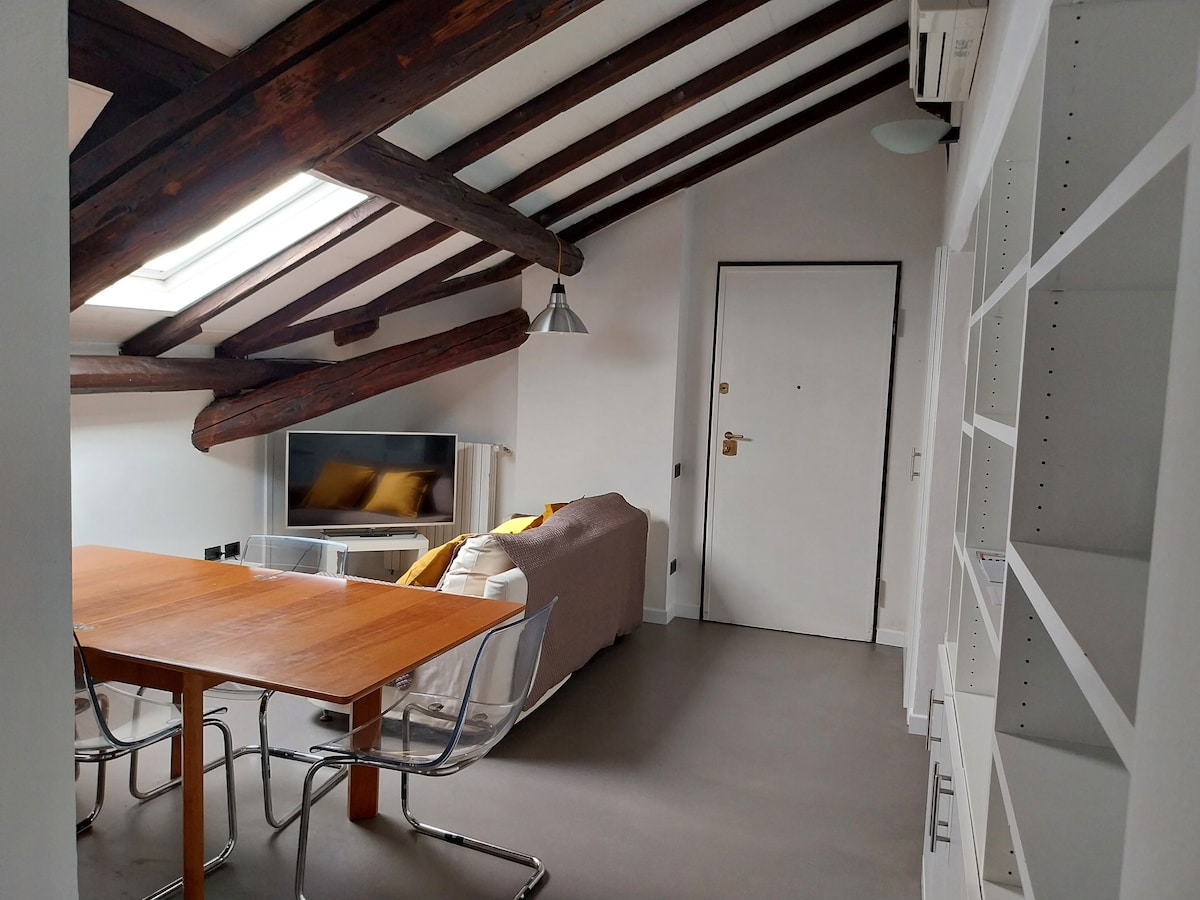 Helle geräumige Zweizimmerwohnung mit Blick auf den Naviglio