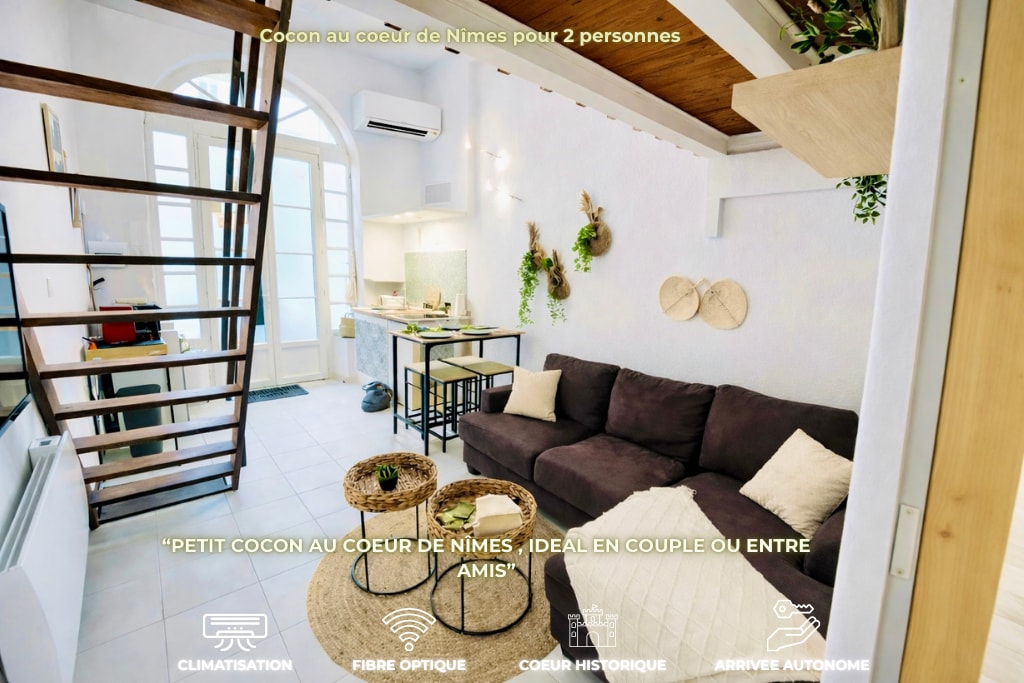 Willkommen in unserer wunderschön renovierten Wohnung in Nîmes! Perfekt gelegen, nur wenige Schritte von historischen Sehenswürdigkeiten entfernt, bietet dieser gemütliche und moderne Raum alles, was du für einen unvergesslichen Aufenthalt benötigst. Genieße eine voll ausgestattete Küche, ein stilvolles Badezimmer, eine Klimaanlage und ein bequemes Bett. Jedes Detail wurde so gestaltet, dass dein Aufenthalt außergewöhnlich ist. 🌟 Entdecke Nîmes mit ultimativem Komfort – buche jetzt! 🌟