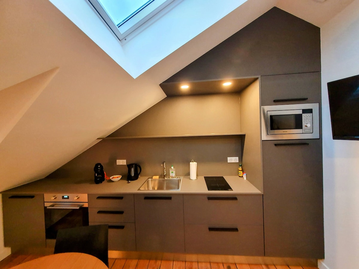 Appartement premium de 35m² situé au troisième étage d'une belle demeure intégralement rénovée en 2022 et idéalement située en hyper-ventre de Reims. Il comporte une cuisine équipée, une salle de bain, une pièce à vivre et une chambre séparée, ainsi qu'une vue imprenable sur la Cathédrale de Reims. Il est également chauffé et climatisé. Tramway, restaurants, commerces et sites touristiques à 2 minutes à pied Idéale pour un séjour inoubliable à Reims, avec vue sur la Cathédrale.