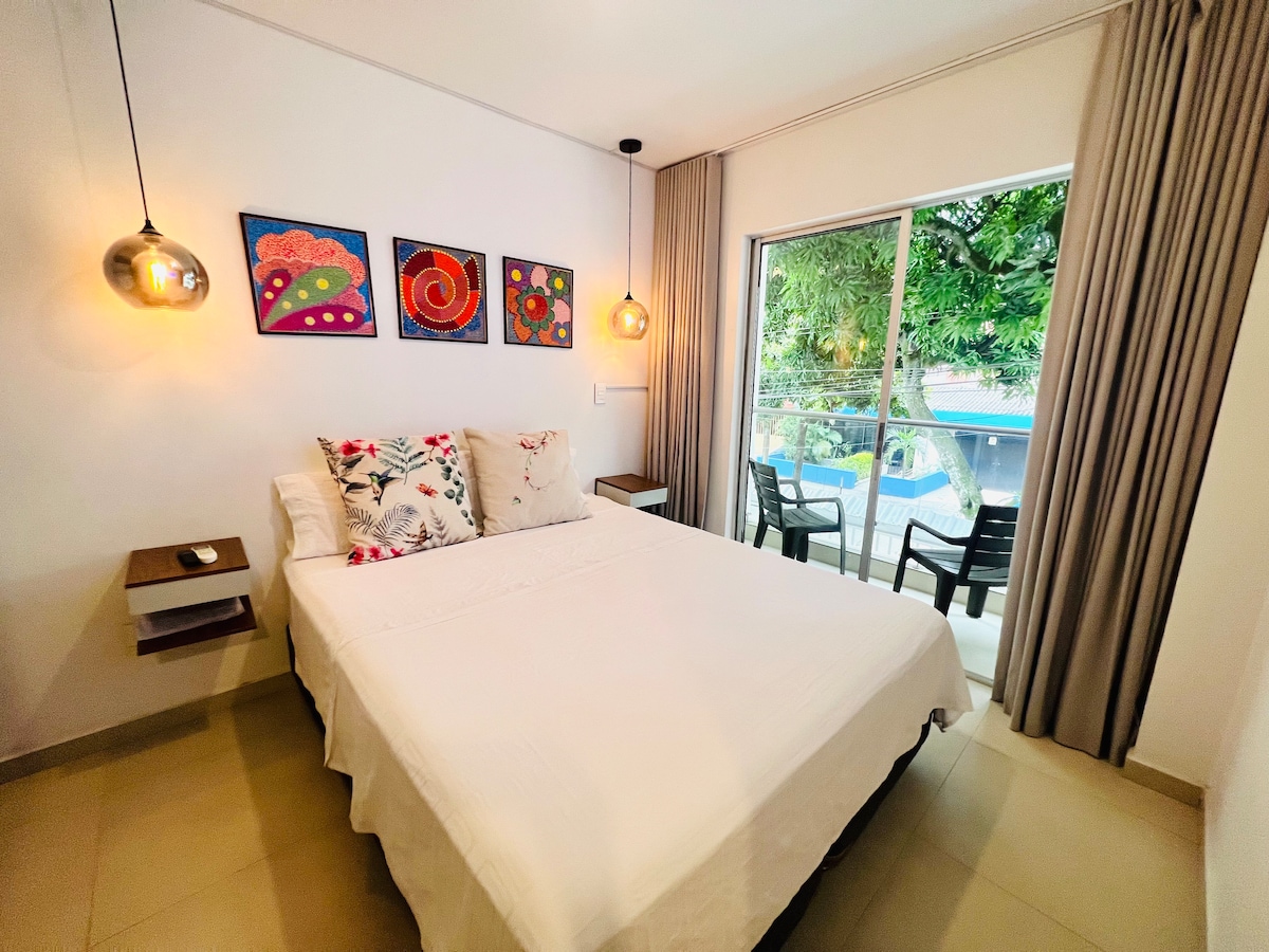 Dies ist eine schöne Wohnung für Ihren Komfort und Ruhe während Ihres Aufenthalts in unserer schönen Stadt. Ausgestattet mit allem, was Sie brauchen, um eine komfortable Pause zu haben, hat es Klimaanlage und warmes Wasser in der Dusche. Außerdem eine voll ausgestattete Küche, einen Hauswirtschaftsbereich mit Waschmaschine und Toilettenartikeln. Sie hat einen Schreibtisch und einen 42-Zoll-Internet-Fernseher mit Zugang zu Netflix und Prime Video