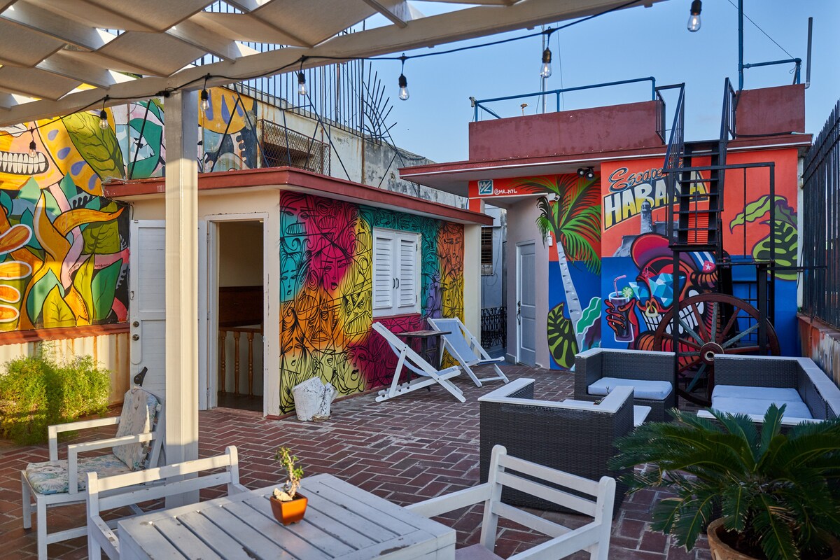 Willkommen im Travelers Bedroom in der Casa Pompei! Dieses stilvolle Boutique-Hotel befindet sich im Herzen Havannas. Du bist nur wenige Gehminuten von allen wichtigen Sehenswürdigkeiten der Stadt entfernt! Es ist nur 20 Minuten vom Flughafen entfernt und wir arrangieren klassische Autoabholungen für unsere Gäste! Jedes Zimmer verfügt über eine eigene Terrasse, eine Dachterrasse mit 360-Grad-Blick, einen Wäscheservice vor Ort sowie eine Küche und ein Esszimmer, um deinen Kaffee mitten in Havanna zu genießen! Wir freuen uns darauf, dich hier willkommen zu heißen!
