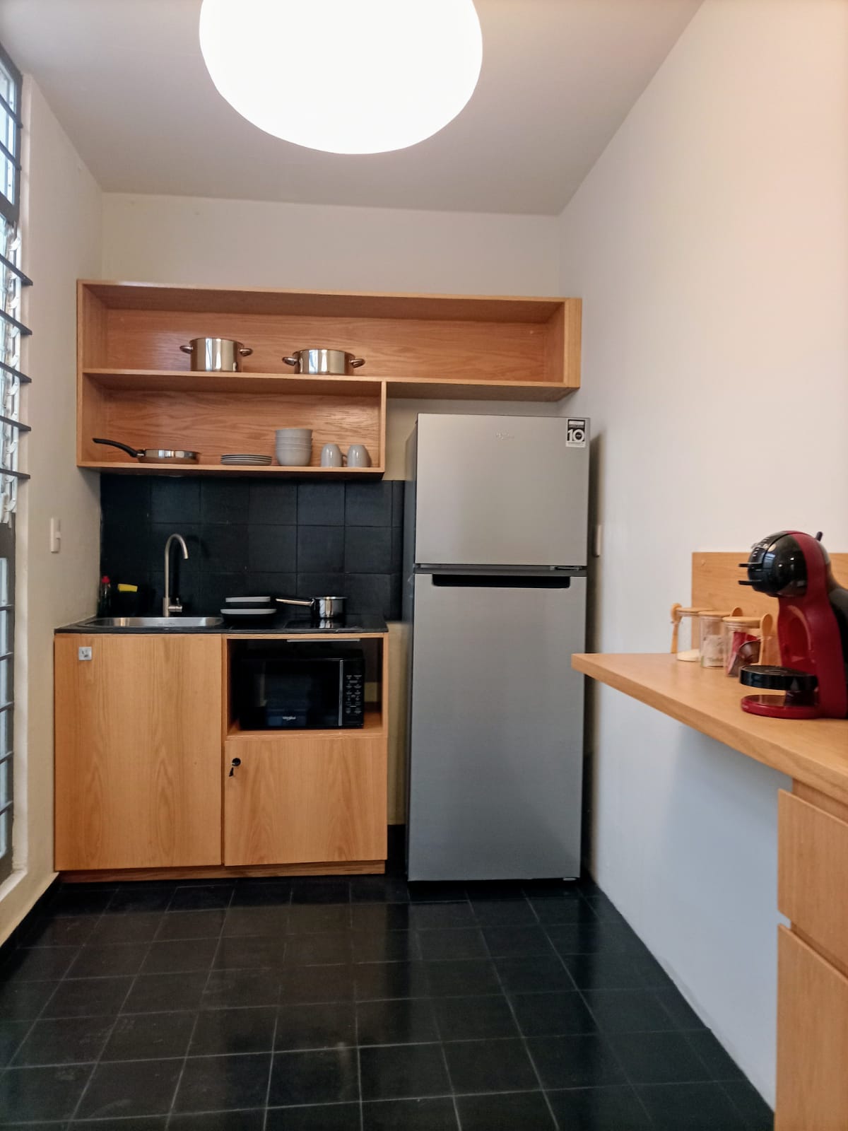 El departamento es muy acogedor, con un estilo interior vintage mexicano, propio al contexto colonial que lo rodea. La vista hacia el jardín es exuberante por sus de frondosos árboles y vegetación. Cuenta con dos recamaras, una de las recamaras ofrece un cómodo sofá cama y la otra, una cama matrimonial, dos estancias de convivencia y una terraza para disfrutar la vista o bien cocinar en un asador tradicional. Aprovechen la oportunidad!!!