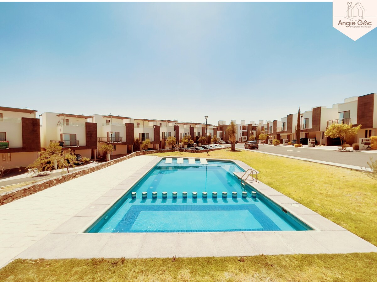 Genießen Sie einen angenehmen Aufenthalt mit Familie, Freunden und/oder Gruppen, nur 8 km vom historischen Zentrum und fünf Minuten vom Corregidora-Stadion entfernt. Das einzigartige und originelle Design dieses einstöckigen Hauses ist mit den Hauptstraßen der Stadt, der Mex/Qro-Autobahn und dem Busbahnhof verbunden. Es verfügt über drei Schlafzimmer, zwei Badezimmer, eine voll ausgestattete Küche, eine Waschmaschine, einen Parkplatz, ein Wohnzimmer, ein Esszimmer, eine Hinterhofterrasse, Schränke, einen Schreibtisch, Grünflächen, Plätze, Supermärkte und Essen in der Umgebung... Sie werden begeistert sein.