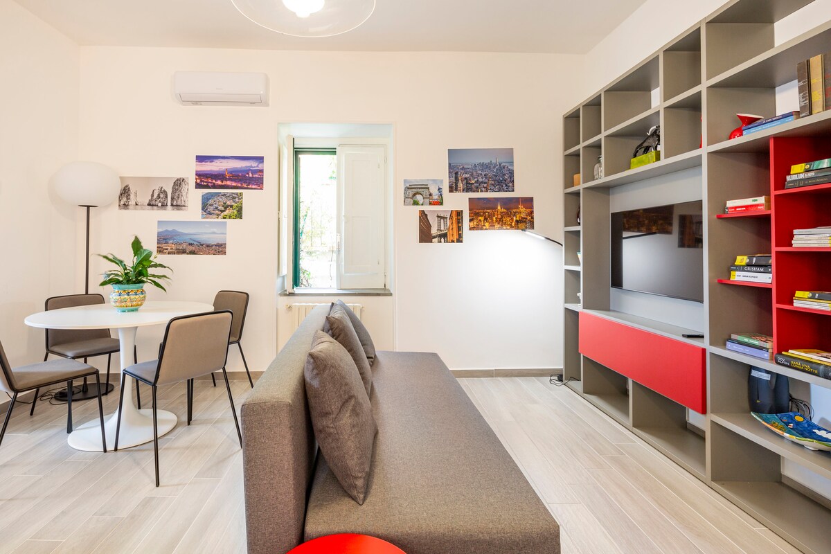 Julius is an open space of historical-artistic importance renovated and restored to protect and enhance the original ambience. The privileged and dominant position, close to the main attractions of the Old Town, allows you to admire the Amalfi Coast and the sea from the wide windows. The space with a double bed is perfect for a couple vacation in the City or for 3 (sofa bed). If connected with Olympia Apt could accomodate 6 people. There is also a depandance where other two guest could stay.