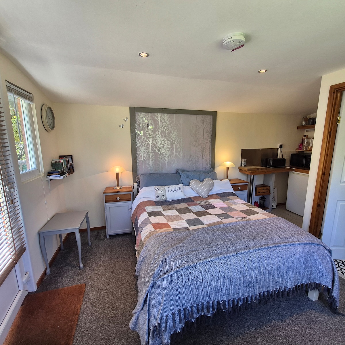 Nur 5 Minuten von den Stränden Aberporth und Tresaith entfernt, verfügt dieses wunderschöne, unabhängige Zimmer über ein modernes Bad, einen privaten Eingang, einen Fernseher und ein kleines Ankleidezimmer. Obwohl keine Küche vorhanden ist, wird ein Frühstücksbuffet mit Toaster, Kühlschrank und Wasserkocher angeboten. Es gibt genügend kostenlose Parkplätze und eine private Terrasse außerhalb des Zimmers mit Tisch und Stühlen – ideal, um den Sonnenuntergang zu beobachten. Sehr friedlich, aber 15 Minuten von den Städten Cardigan und Newcastle Emlyn entfernt. Bitte beachte, dass dies nicht für Kleinkinder oder Haustiere geeignet ist.