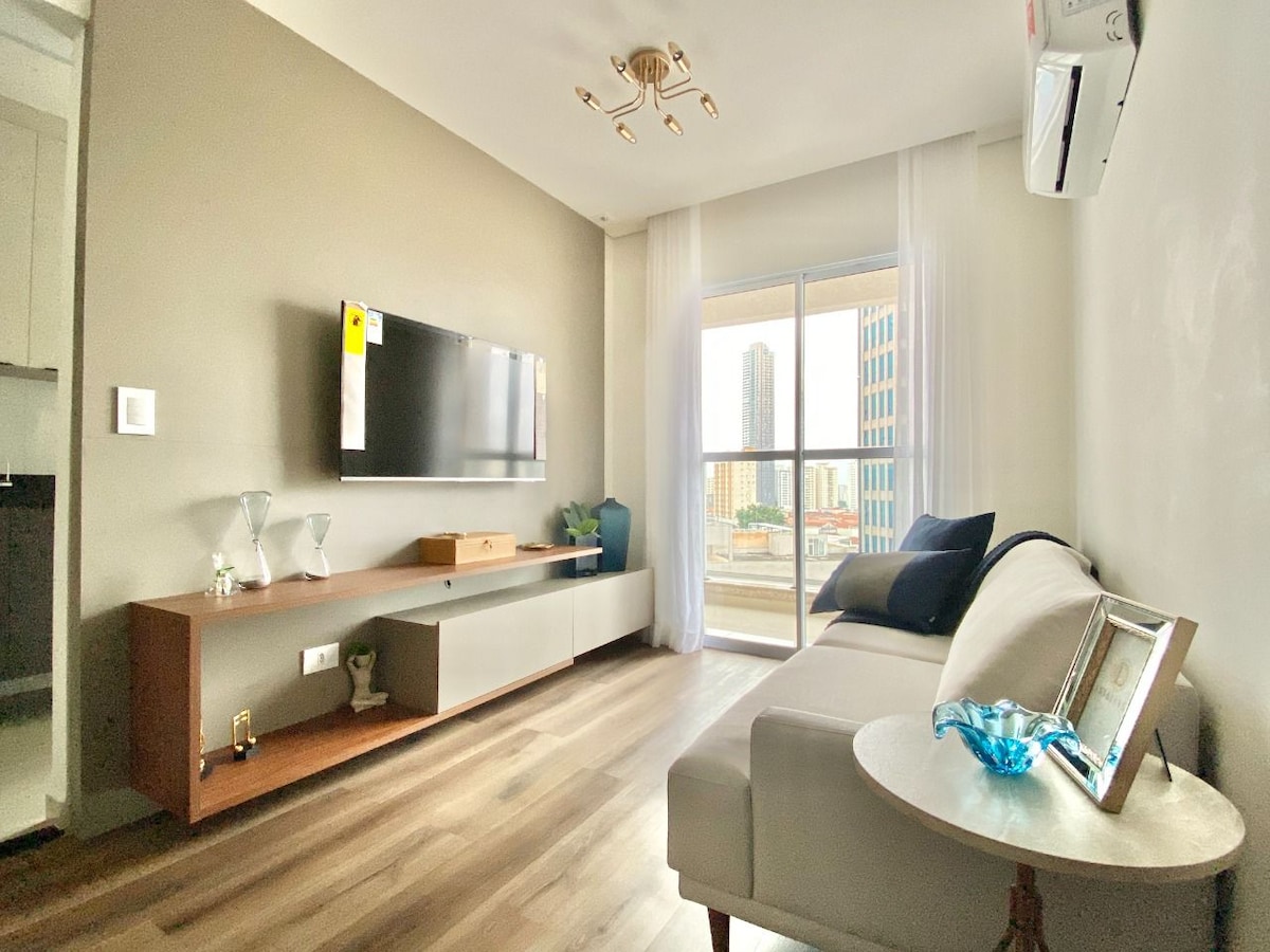 Apartamento moderno (recém inaugurado) 1º Andar, ar condicionado, suíte privativa e segurança 24 horas. Possui design moderno e funcional com 40m², 100 % mobiliado e decorado com itens de alta qualidade e todos utensílios necessários para estadias de longa e curta duração (até 4 pessoas). Localização excelente no bairro Jardim Anália Franco, com fácil acesso a parques, restaurantes e transporte público. A 3 minutos do Shopping Anália Franco, 23 minutos do Aeroporto de Guarulhos.