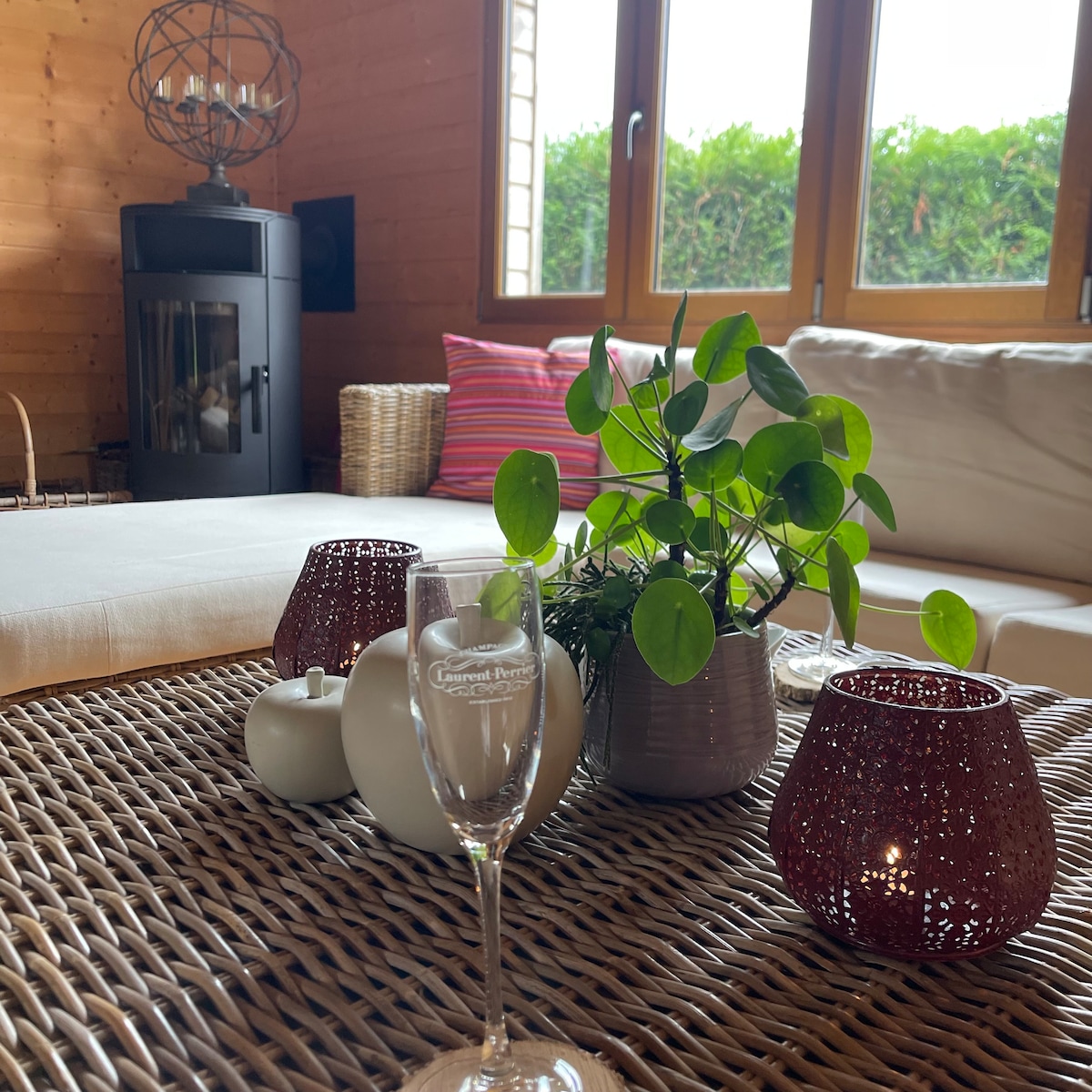 Ungewöhnliche Unterkunft Der Wohnwagen ist komplett ausgestattet, kleine Küchenzeile, die auf der einen Seite zum Bett, auf der anderen zum Esstisch sowie zum Fernseher führt, und schließlich zum Badezimmer. Die Küche ist mit einem Kühlschrank, einem Elektroherd, einer Mikrowelle und einer Kaffeemaschine ausgestattet. Im Garten finden Sie zwei Liegestühle mit Tisch und Stühlen, um die Sonne in vollen Zügen zu genießen. Ein Holzkohlegrill steht Ihnen ebenfalls zur Verfügung. Unsere Freunde, die Haustiere, sind leider nicht erlaubt