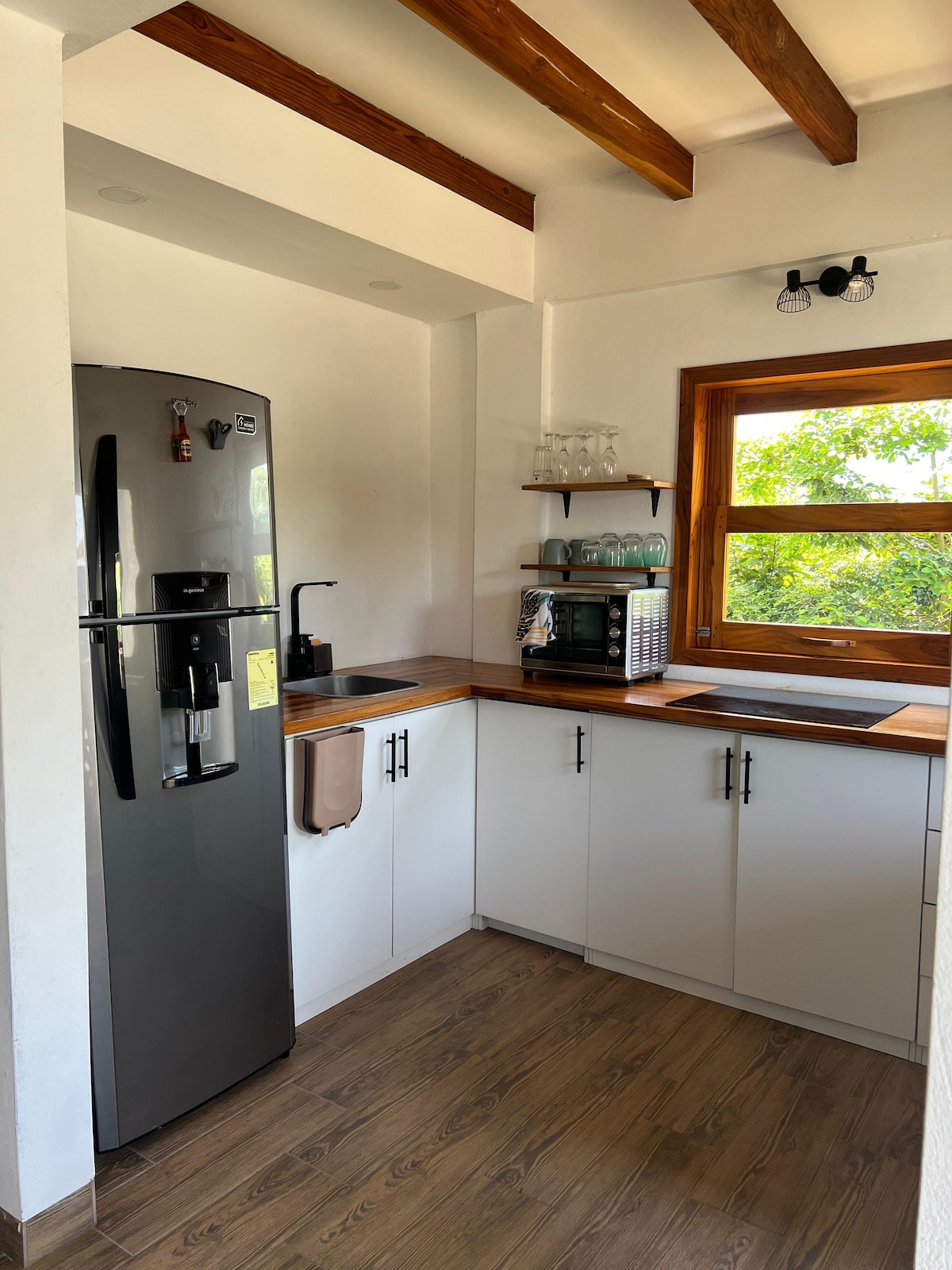 Literally 20 steps from the beach, this newly built one-bedroom apartment is located in a quiet part of Ayampe, just a 5-minute walk to restaurants and cafés. It has a small garden and a private terrace where you can relax in a hammock or do yoga. Spacious and comfortable, the apartment features a fully equipped kitchen, A/C, and a sofa that converts into a bed. Ideal for couples, friends, or a small family — perfect for surfing, relaxing, or working remotely with reliable Wi-Fi.