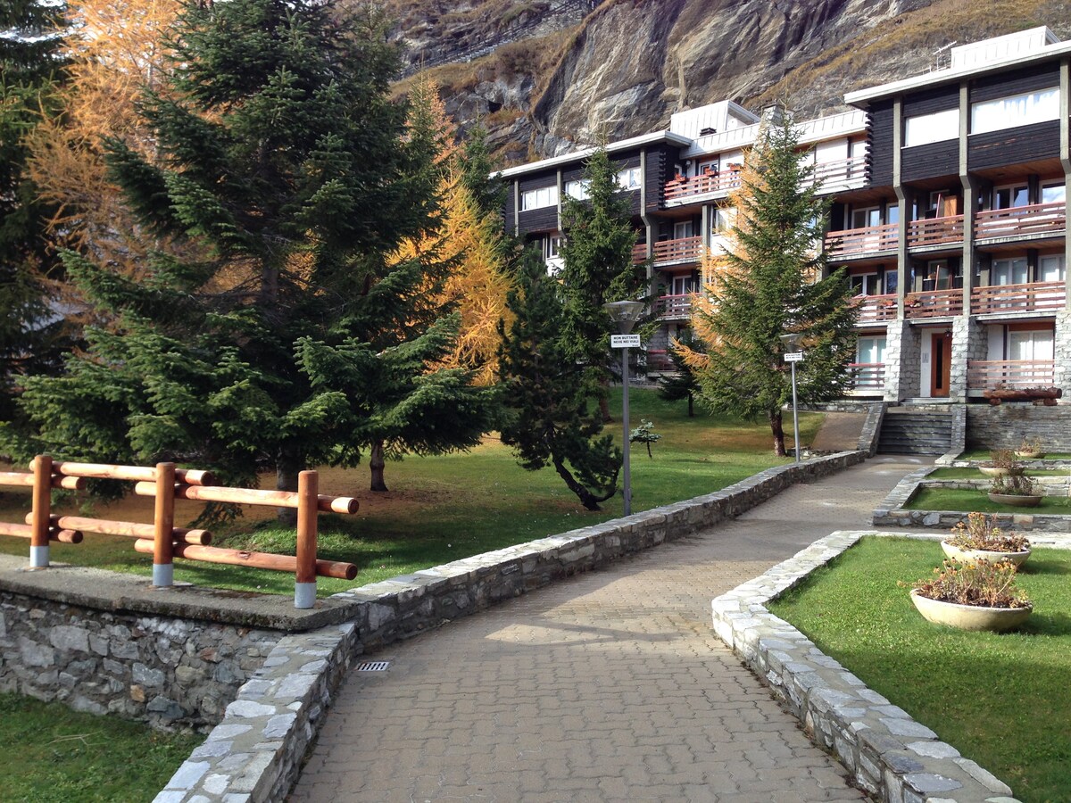 Charmantes Studio von 38 m2 mit Balkon und direktem Blick auf das Matterhorn. Es ist voll ausgestattet (Küche, Bad). Sie befindet sich im Herzen des Dorfes Zermatt. Diese gemütliche Unterkunft befindet sich im 2. Stock eines sehr ruhigen Gebäudes im Stadtteil Wiesti. Es liegt 150 m von der Standseilbahn Sunnegga (Zugang zum Ski- und Wandergebiet) und 800 m vom Stadtzentrum, den Geschäften und dem Bahnhof Zermatt (8 Minuten zu Fuß) entfernt.